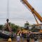 Crane PT GNI Bantu Derek Mobil Warga Yang Jatuh Ke Parit