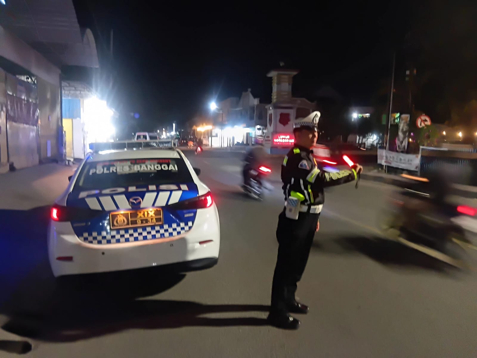 Seperti yang terlihat pada Malam kamis personil Satlantas Polres Banggai melaksanakan pengaturan seputaran Kota Luwuk seperti di Jalan Tg. Santigi, Jalan Moh. Hatta dan Jalan MT. Haryono.