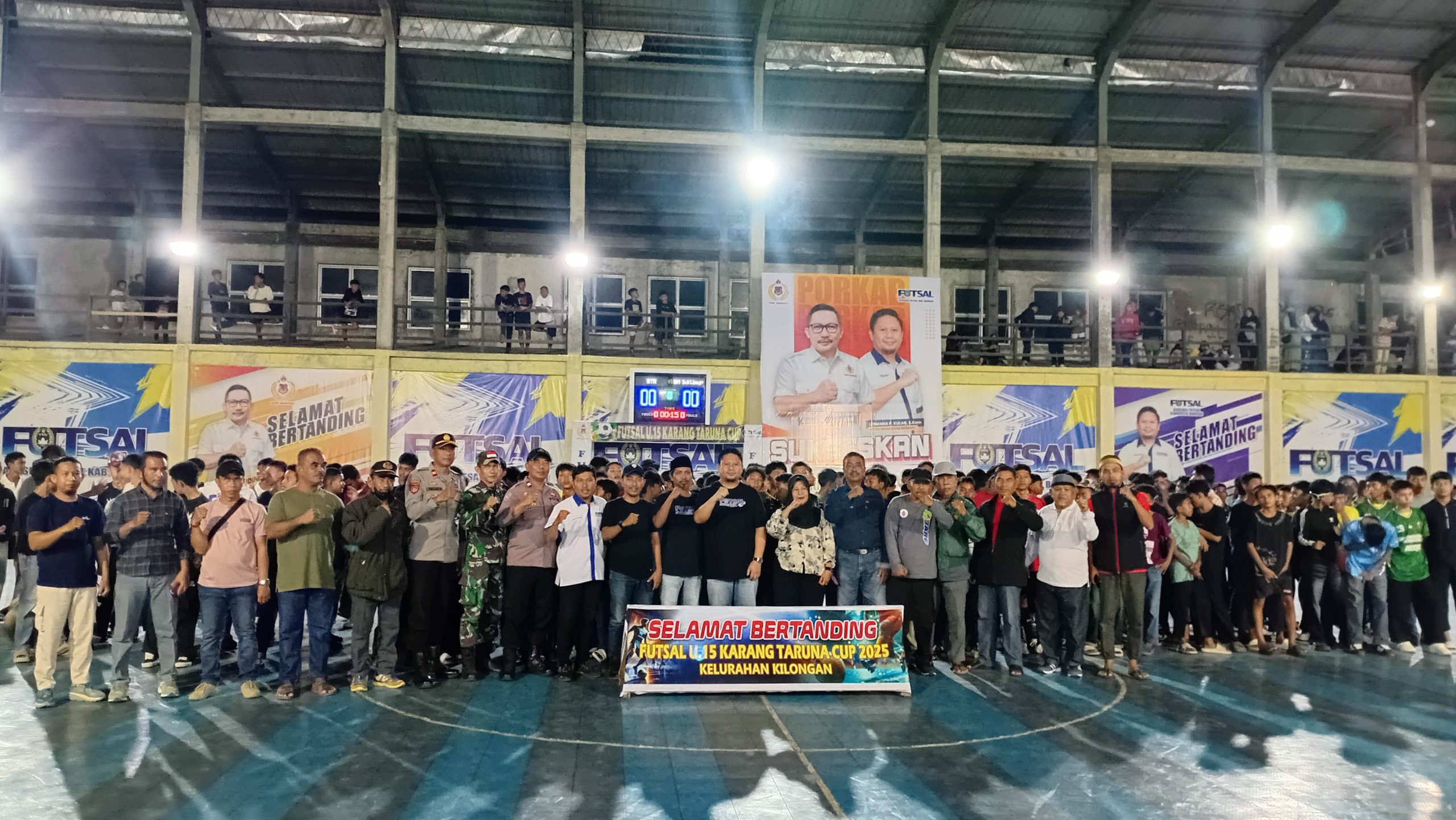 Luwuk Utara, Globalrakyat.com – Sebanyak 22 tim futsal dari berbagai klub ambil bagian dalam Turnamen Futsal U-15 yang diselenggarakan oleh Karang Taruna Kelurahan Kilongan. Turnamen ini secara resmi dibuka oleh Ketua Umum Asosiasi Futsal Kabupaten (Afkab) Banggai, Lesmana P. Kulab, S.Kom., pada Minggu malam (3/8/2025) pukul 20.00 Wita, bertempat di Lapangan GOR Kilongan Permai, Kecamatan Luwuk Utara.