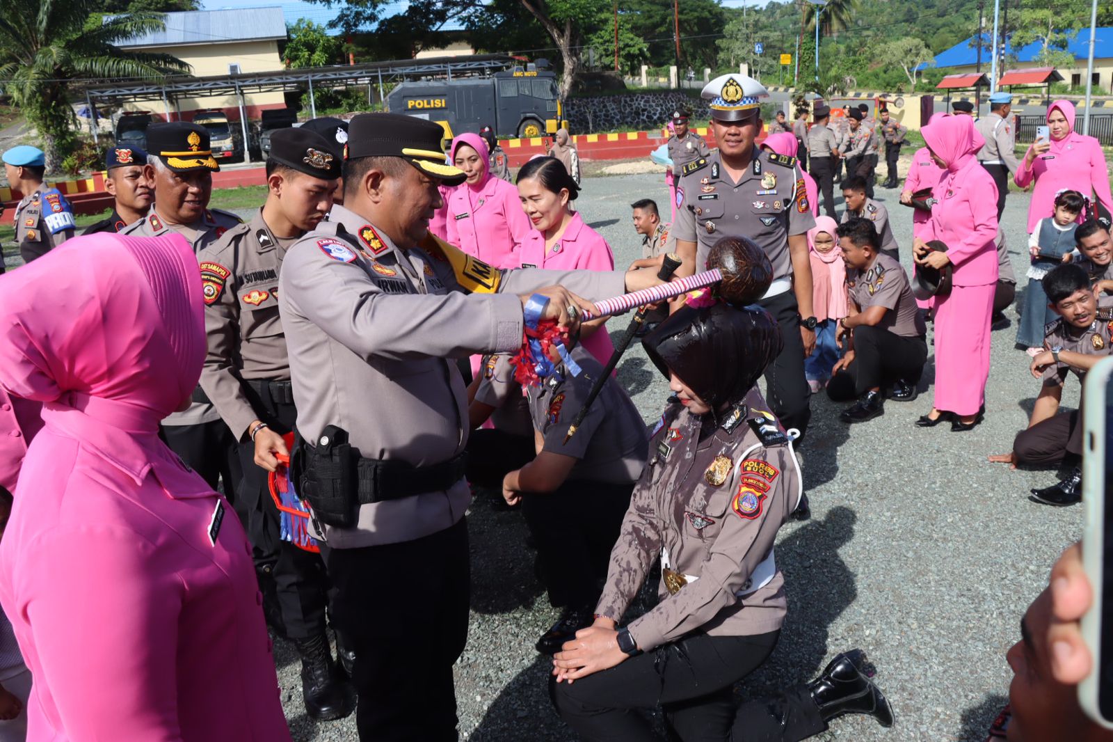 Setelah upacara usai dilanjutkan dengan acara tradisi penyiraman air kembang kepada personel yang mendapatkan kenaikan pangkat, suasana berlangsung dengan hikmat sambil mengucapkan syukur atas berkah yang Tuhan berikan.