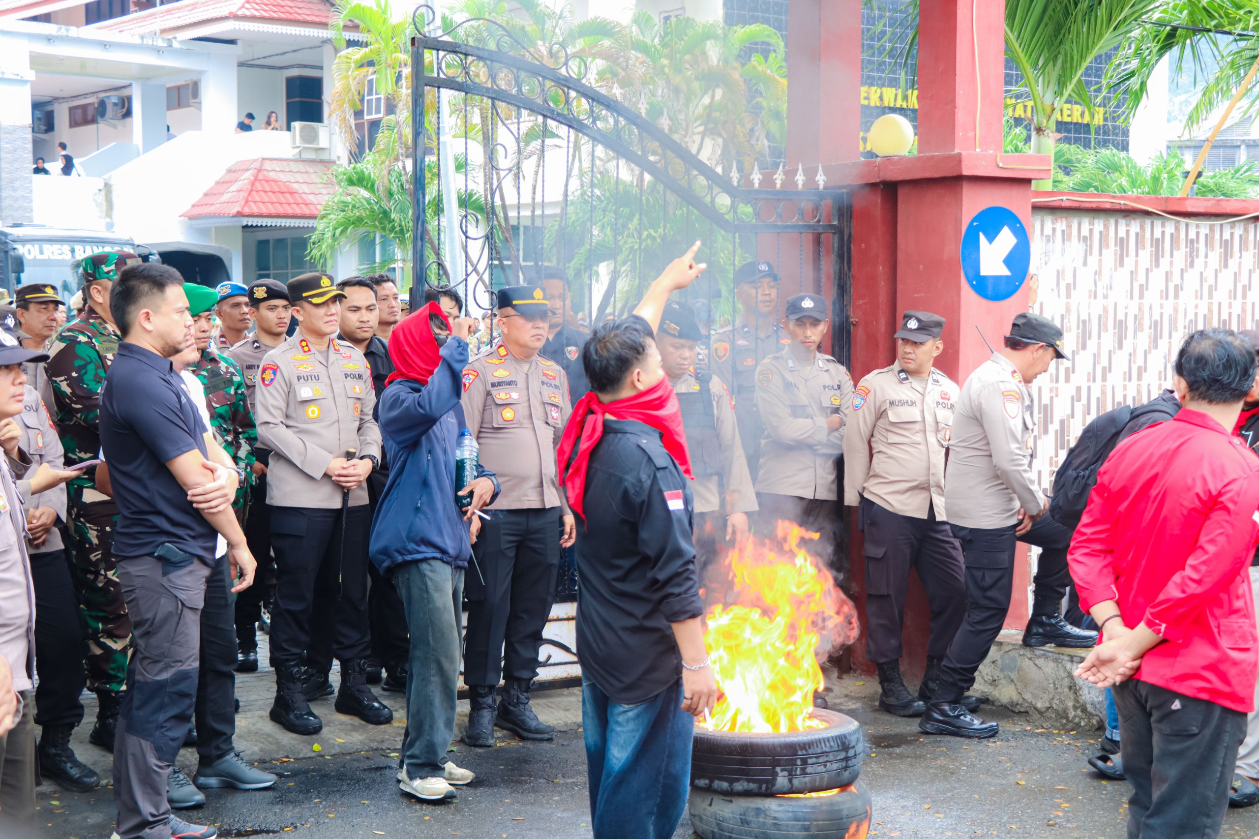Ratusan personel kepolisian bersama TNI, Brimob dan Satpol PP bersiaga menjaga jalannya aksi. AKBP Putu memberikan arahan agar mengedepankan pendekatan humanis, persuasif, dan mengutamakan keselamatan seluruh pihak.