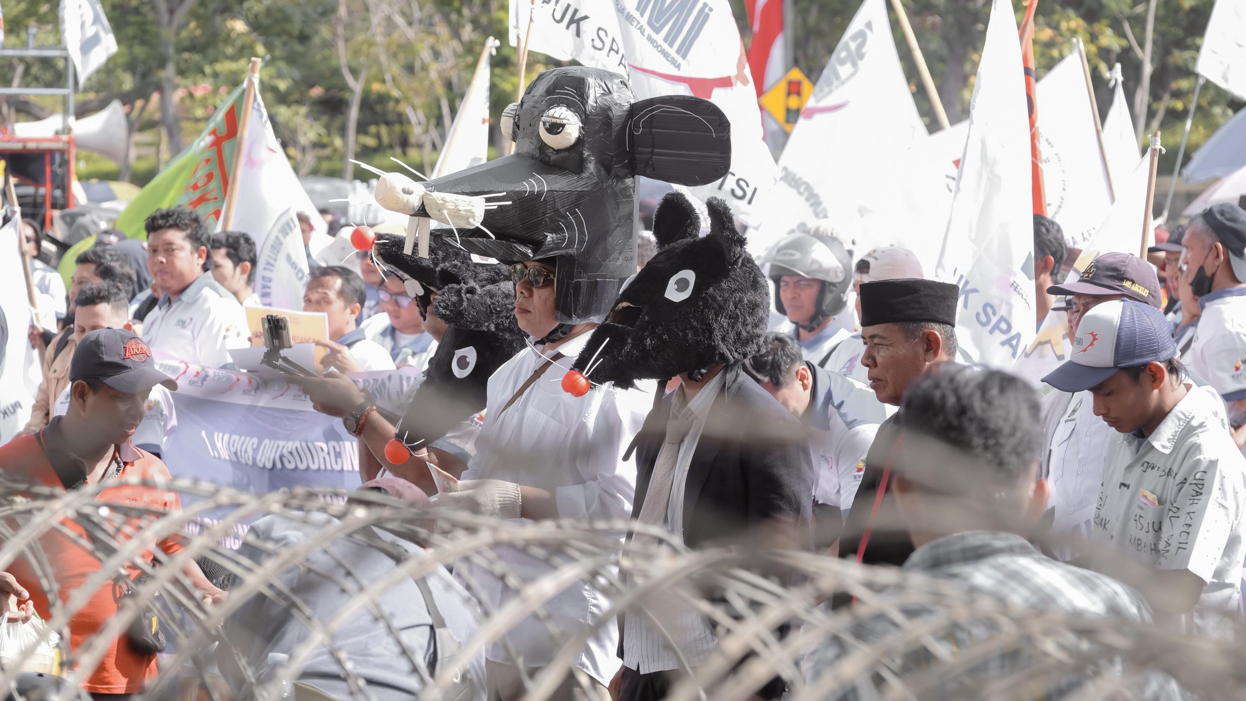 Massa buruh dari berbagai serikat pekerja mulai berkumpul sejak pagi di beberapa titik, seperti Bundaran Waru Sidoarjo, lalu bergerak menuju Gedung Negara Grahadi.