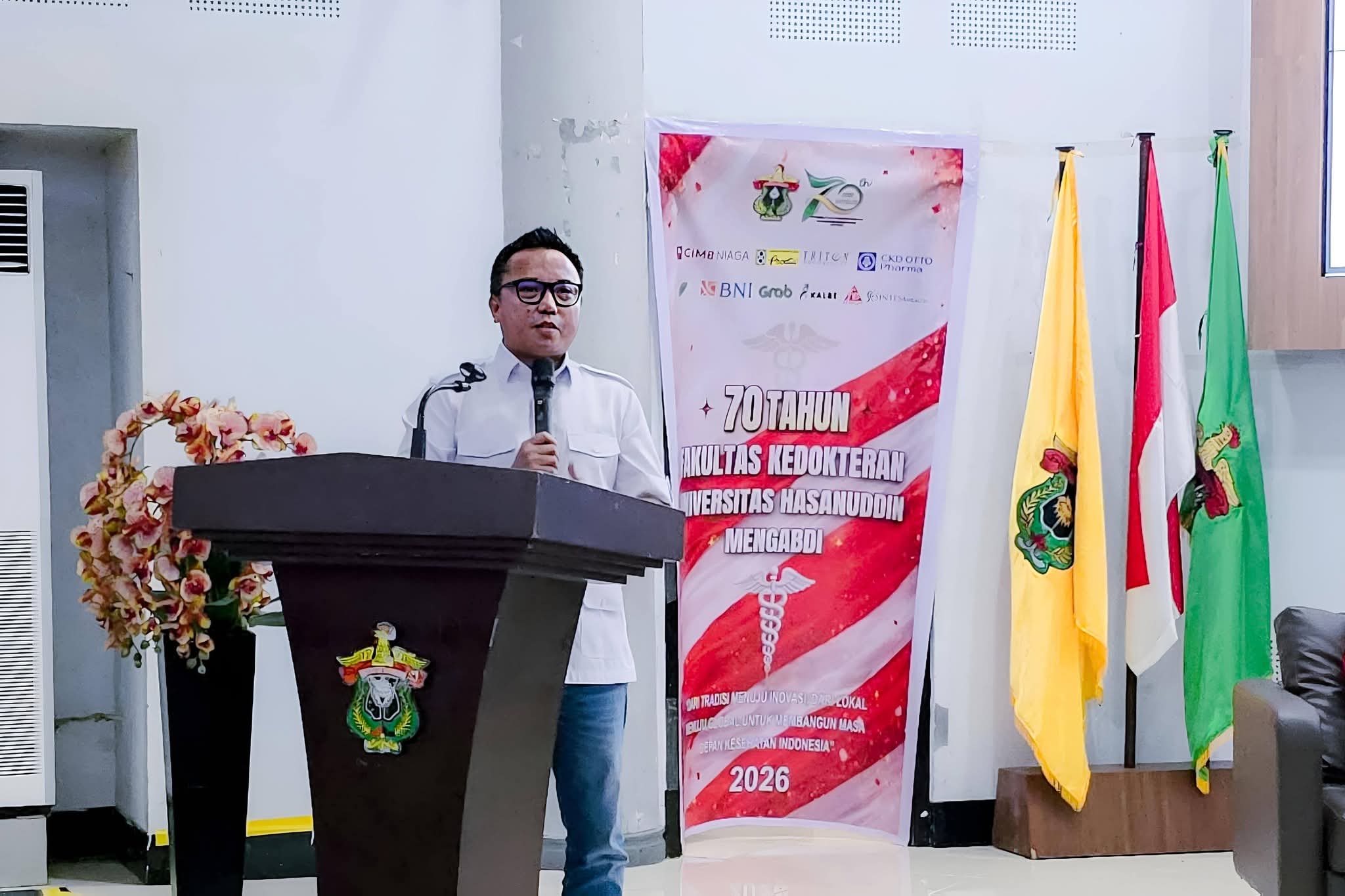 “Pembangunan daerah adalah fondasi Indonesia Emas. Jika daerah kuat, sehat, dan cerdas, maka Indonesia akan berdiri kokoh. FK Unhas memiliki peran strategis dalam mencetak dokter dan pemimpin masa depan yang tidak hanya unggul secara akademik, tetapi juga memiliki kepedulian sosial dan jiwa pengabdian,” tambahnya.