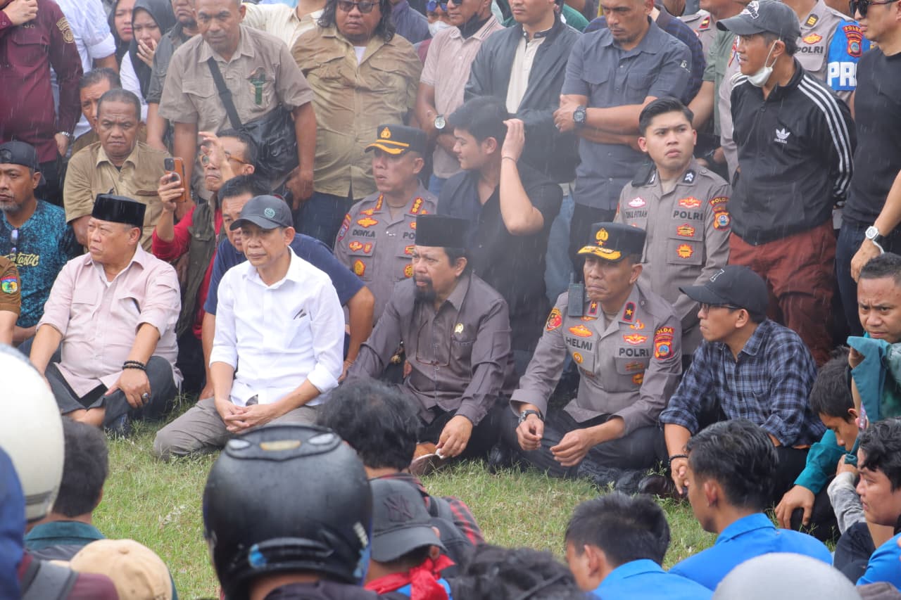 Pejabat forkopimda Sulteng pun kompak menemui masa aksi dengan duduk bersama diatas rumput untuk menerima ribuan masa aksi. Diantara pejabat yang hadir Gubernur Sulteng Dr. Anwar Hafid, Ketua DPRD Sulteng H. Arus Abd. Karim, Danrem 132 Tadulako Brigjen TNI Deni Gunawan, Wakapolda Brigjen Pol. Dr. Helmi Kwarta Kusuma Putra Rauf, Walikota Palu H. Hadianto Rasyid dan mantan Gubernur H. Rusdi Mastura.