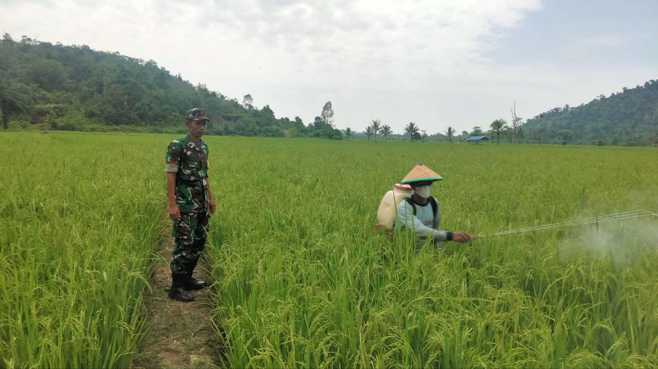 Pendampingan ini berupa penyemprotan tanaman padi untuk menjaga kesuburan dan melindungi tanaman dari hama. Kegiatan ini merupakan bagian dari upaya mendukung program ketahanan pangan di wilayah binaan. Kopda Maradona Siregar menegaskan pentingnya perawatan rutin pada tanaman padi untuk meningkatkan hasil panen dan kesejahteraan petani.