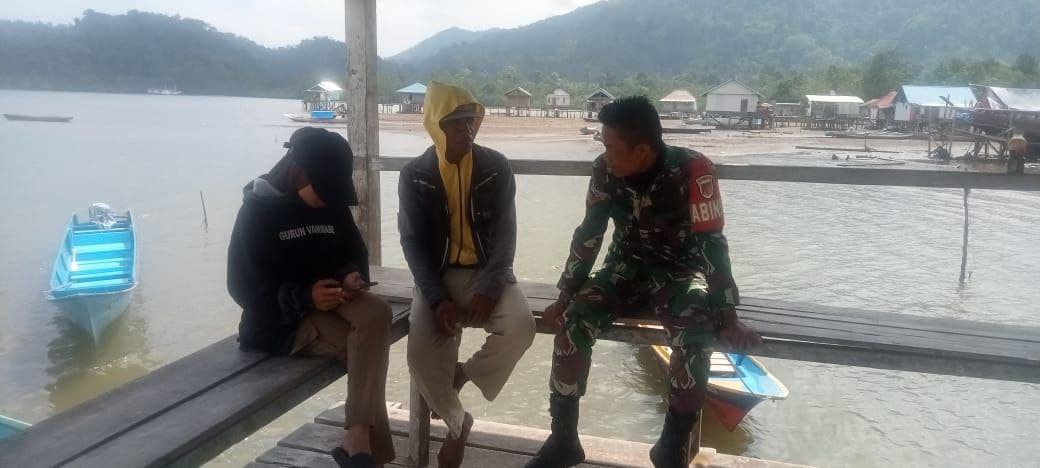 Dalam kegiatan tersebut, Serka Wisno memberikan himbauan kepada warga agar berhati-hati saat melaut, terutama saat cuaca hujan dan angin kencang.