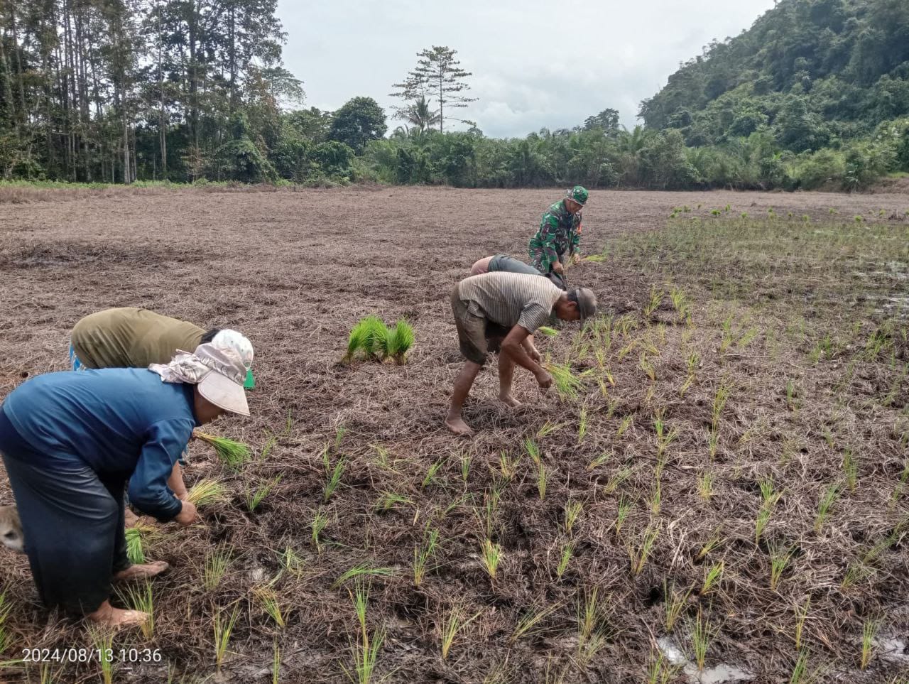 Morowali Utara, Globalrakyat.com – Sebagai wujud nyata dukungan TNI terhadap program ketahanan pangan, Babinsa Koramil 1311-03/Petasia, Pelda Alwi Genda, melaksanakan pendampingan kepada petani dalam kegiatan penanaman padi di wilayah Kecamatan Petasia Timur, Kabupaten Morowali Utara.