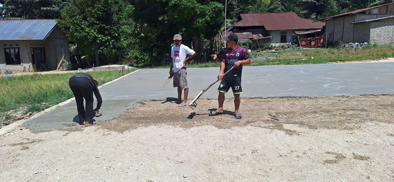 Babinsa Koramil 1311-05/Mori Atas Bersama Masyarakat Desa Gontara Gelar Karya Bakti Pengecoran Lapangan Futsal