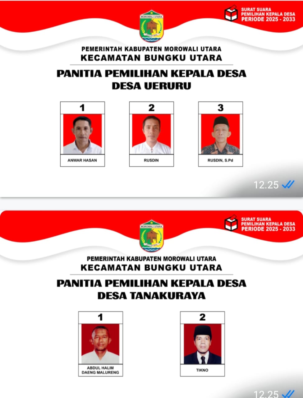Morut, Globalrakyat.com – Pemilihan Kepala Desa (Pilkades) serentak yang digelar di lima desa di Kabupaten Morowali Utara pada Selasa, 23 Juli 2025, berlangsung lancar dan aman.