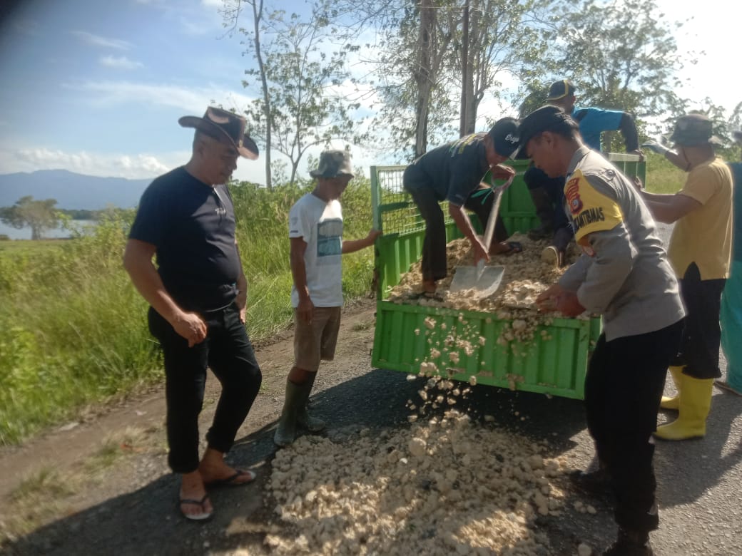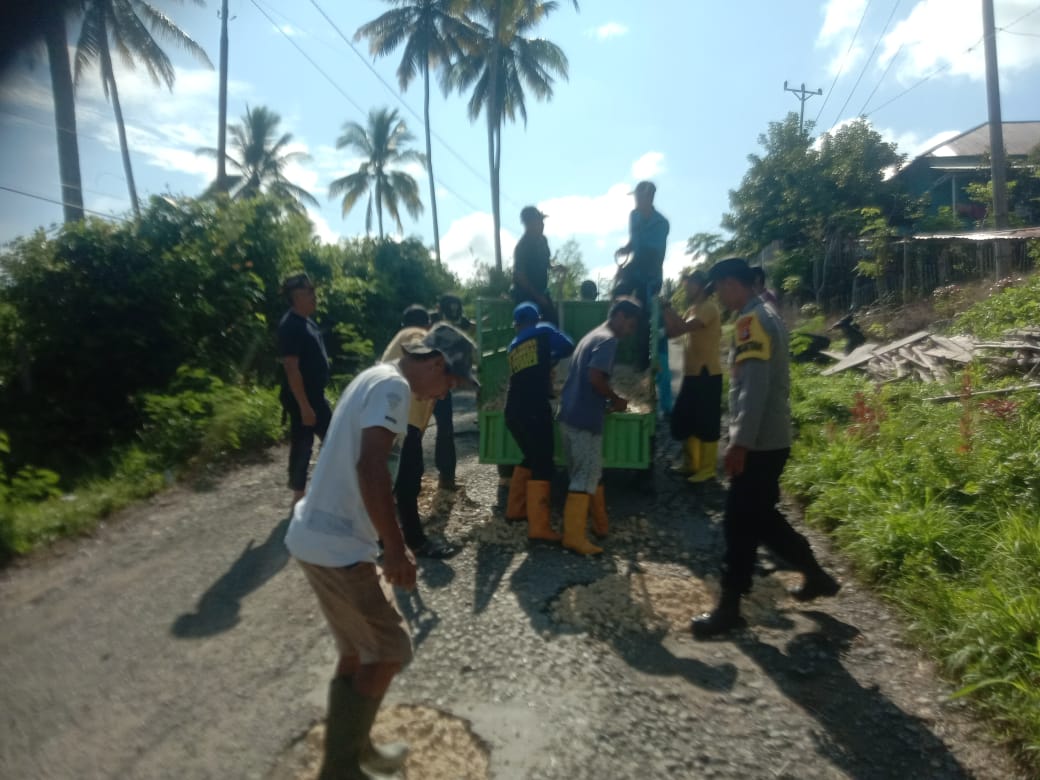 Pelaksanaan kerja bakti ini dipimpin oleh Camat Lamala melakukan penimbunan jalan berlubang di sejumlah titik di Desa Lomba.