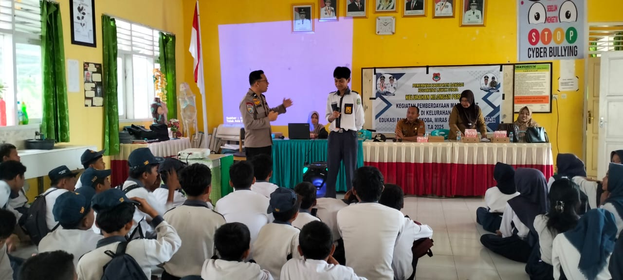 Sosialisasi yang digelar di ruang kelas sekolah itu, dihadiri oleh Kepala SMPN 6 Luwuk, Bhabinkamtibmas Aipda Seprianto dan puluhan pelajar.