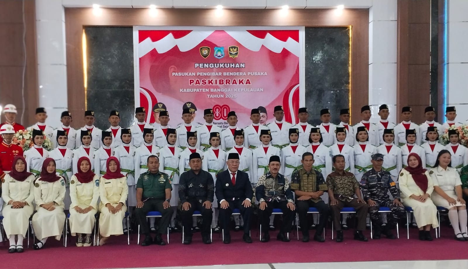 Salakan, Globalrakyat.com – Bupati Bangkep Rusli Moidady resmi kukuhkan calon Paskibraka 2025 di Aula Bappeda Kab. Banggai Kepulauan, Jumat (15/8/2025).
