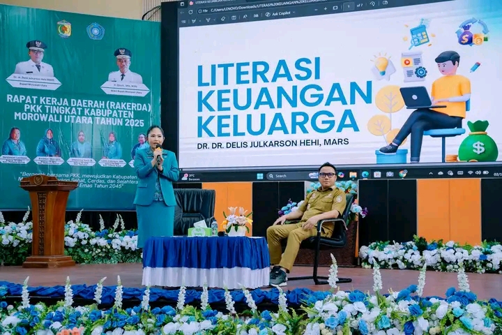 Usai pembukaan, Bupati Delis kemudian membawakan materi pembekalan mengenai literasi keuangan keluarga bagi seluruh peserta. Sesi ini dipandu langsung oleh Ketua TP-PKK Morut, Febriyanthi Hongkiriwang, yang bertindak sebagai moderator.