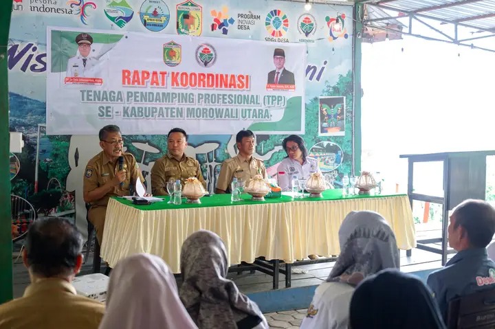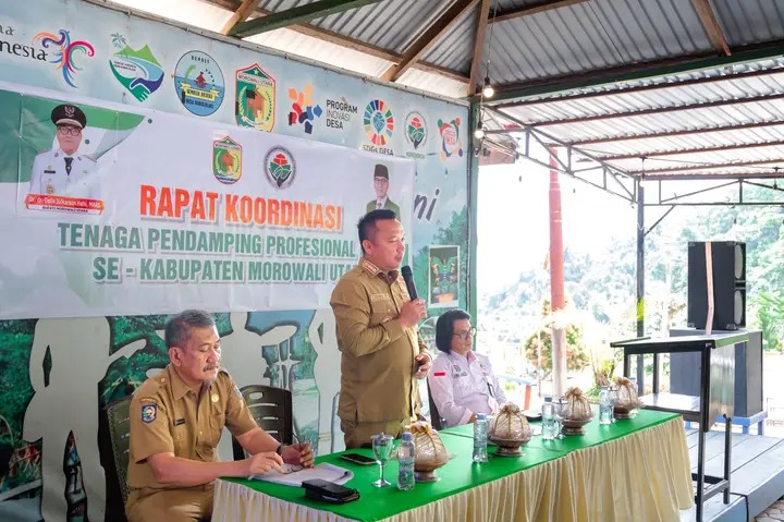 Kolonodale, Globalrakyat.com – Bupati Morowali Utara Delis J. Hehi, hadir memberikan pengarahan kepada tenaga pendamping desa Dinas Pemerintahan Masyarakat Desa (PMD) Morut yang menghadiri Rakor Program Pembangunan dan Pemberdayaan Masyarakat Desa (P3MD) di lokasi wisata Puncak Harmoni Korolaki, Selasa siang (29/4)