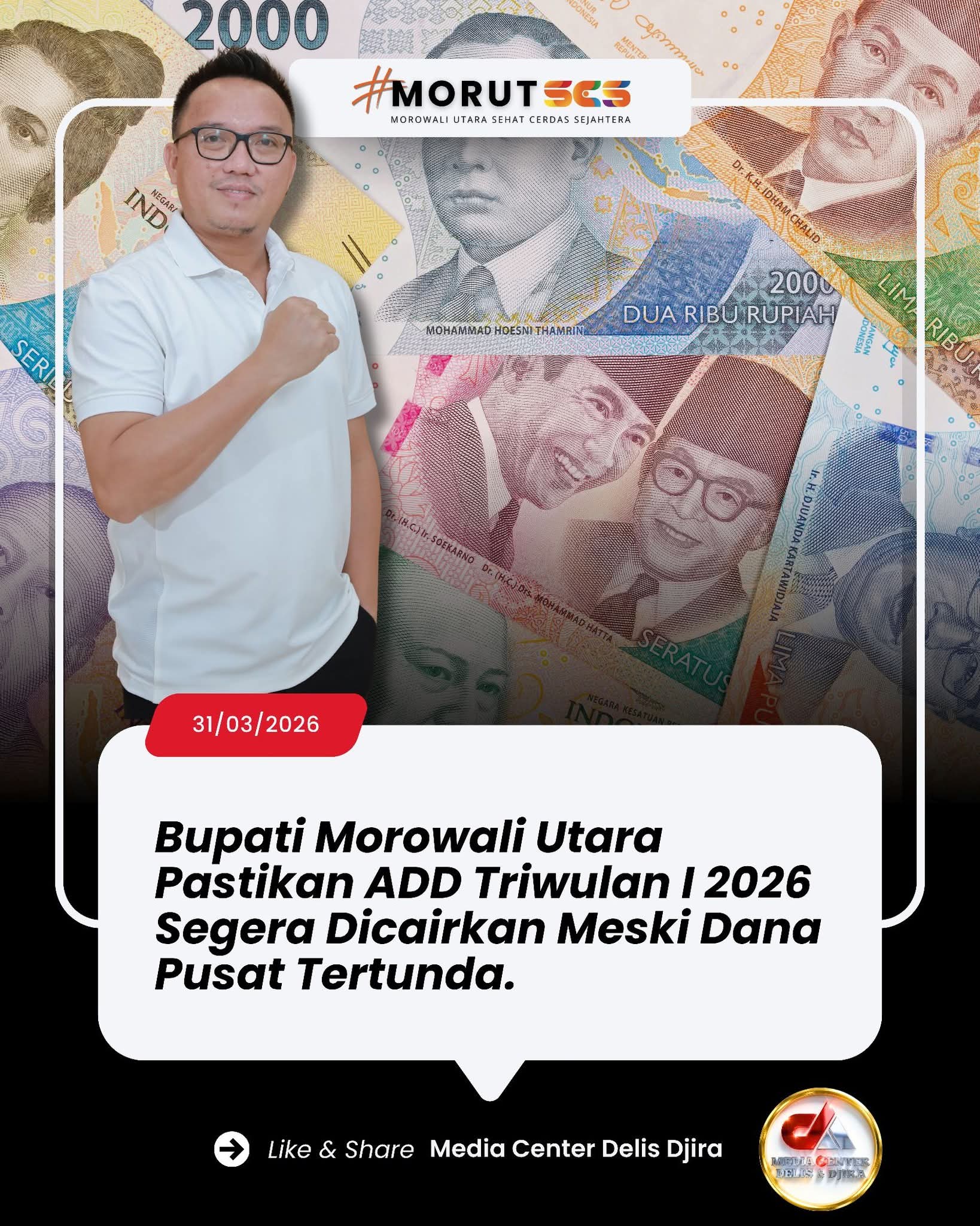 Palu, Globalrakyat.com – Bupati Morowali Utara Delis Julkarson Hehi memastikan bahwa penyaluran Alokasi Dana Desa (ADD) tahun anggaran 2026 untuk periode Januari hingga Maret akan segera direalisasikan.