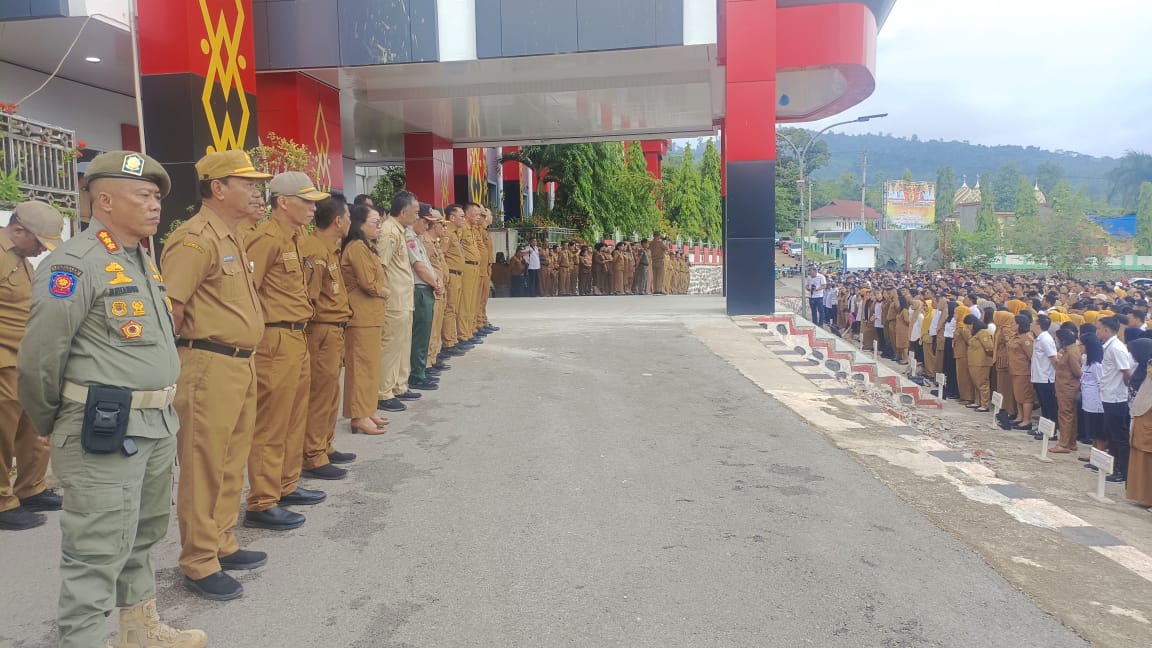 Apel ini dipimpin langsung oleh Bupati Morut, Dr. dr. Delis Julkarson Hehi dan dihadiri Wakil Bupati Morut, H. Djira K. S.Pd., M.Pd., Sekretaris Daerah Ir. Musda Guntur, M.M., para asisten, pimpinan Organisasi Perangkat Daerah (OPD), serta seluruh pegawai lingkup Pemda Morut.
