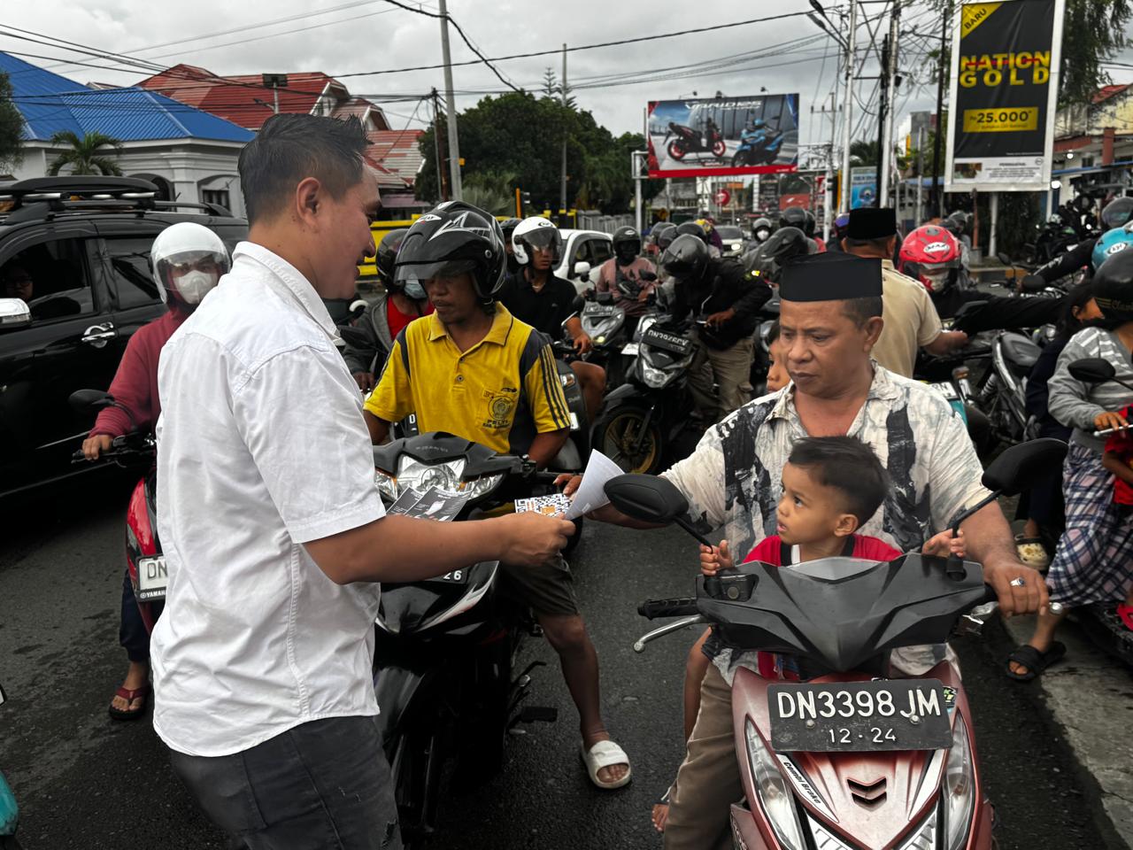 Bakti sosial tersebut dilaksanakan di sepanjang jalan Urip Sumoharjo Luwuk, setiap pengendara yang melintas diberikan takjil, menjelang berbuka puasa.
