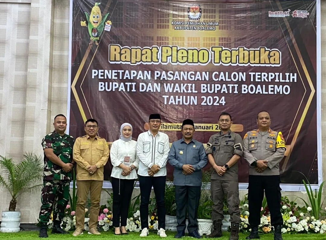 Globalrakyat.com – Komisi pemilihan umum (KPU) kabupaten Boalemo resmi menetapkan pasangan calon bupati dan wakil bupati nomor urut 2, Rum Pagau dan Lahmudin Hambali, sebagai sebagai pemenang pilkada Boalemo 2024, penetapan dilakukan dalam rapat pleno terbuka yang berlangsung pada Kamis ( 09/10/2025).