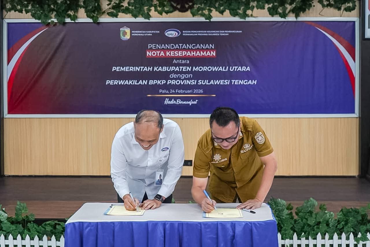 Hal tersebut ditandai dengan penandatanganan nota kesepahaman antara Pemkab Morowali Utara dan BPKP Perwakilan Provinsi Sulawesi Tengah yang berlangsung di Aula Graha Audita BPKP Sulteng, di Palu selasa pagi (24/2/2026).