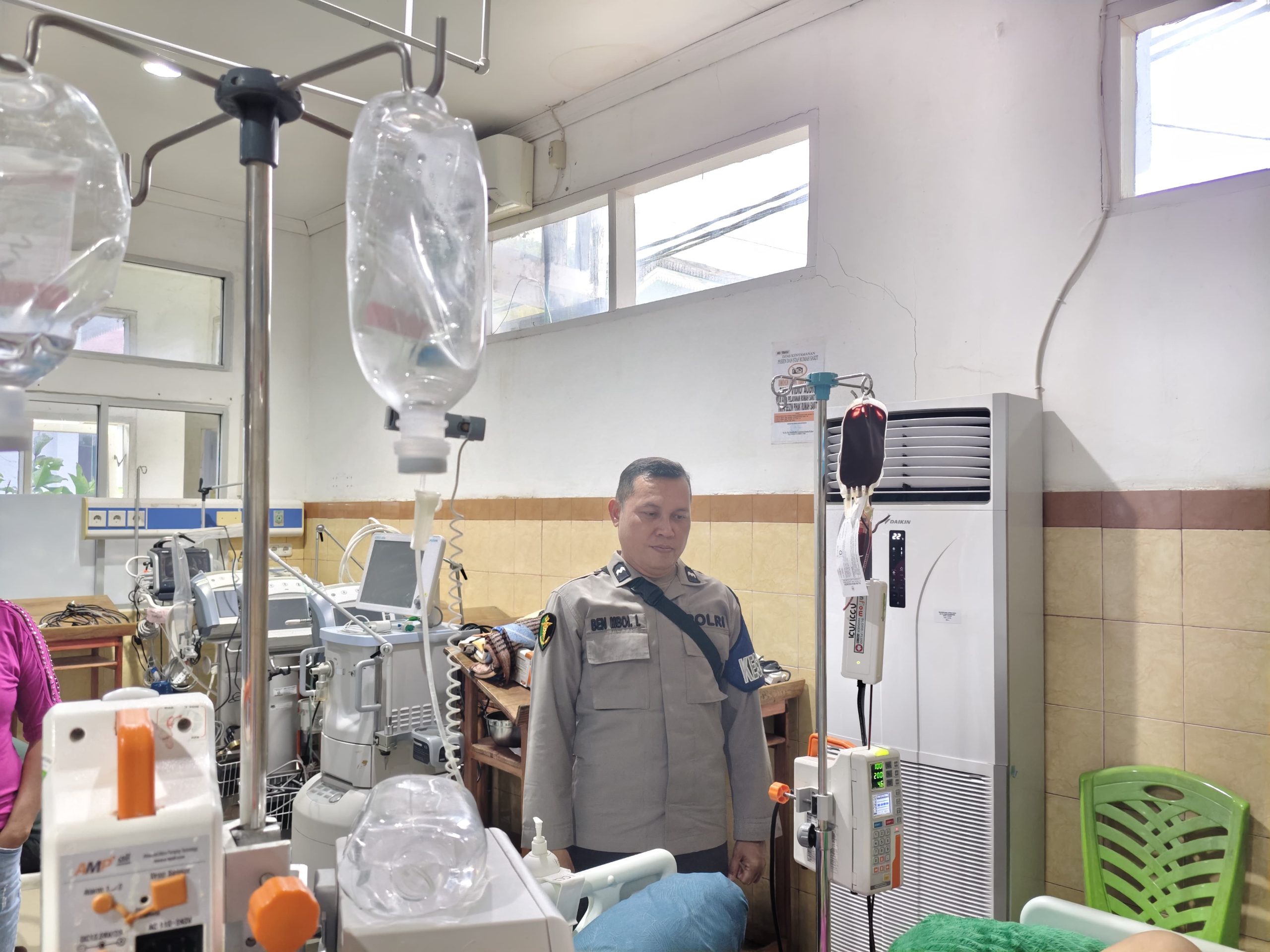 Tim Sidokkes Polres Banggai, mendatangi langsung tempat perawatan untuk memberikan dukungan moril serta memastikan bahwa Merlin Sambeta mendapatkan penanganan medis yang optimal.