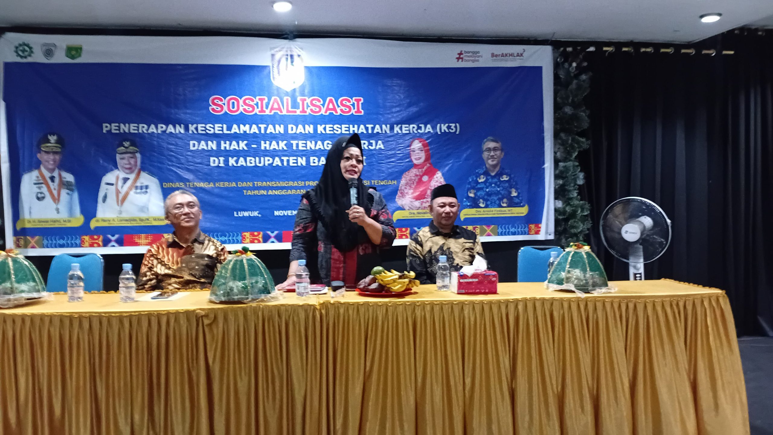 Luwuk, Globalrakyat.com – Anggota DPRD Provinsi Sulawesi Tengah dari Fraksi PDI Perjuangan, Dra. Hj. Sri Indraningsih Lalusu, MBA, memberikan dukungan penuh terhadap kegiatan sosialisasi penerapan Keselamatan dan Kesehatan Kerja (K3) serta pemahaman hak-hak tenaga kerja bagi masyarakat dan pekerja di Kabupaten Banggai.