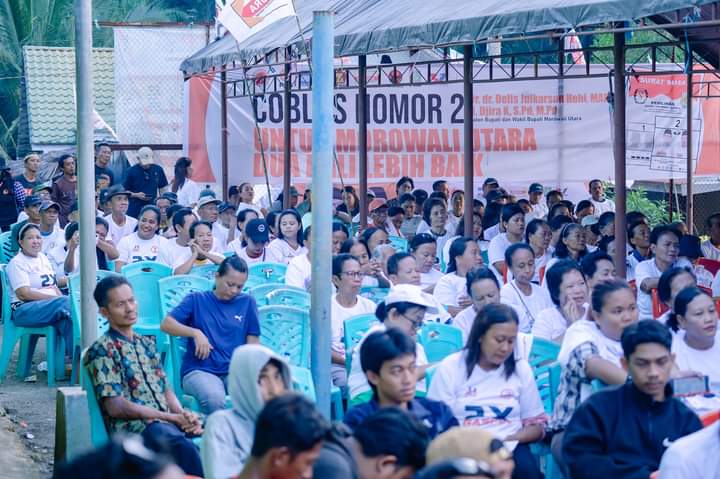 Kampanye di titik ke tiga itu berlangsung meriah. Pasangan Delis-Djira disambut secara adat Mori sebagai penghargaan tertinggi kepada kedua calon pemimpin kabupaten Morowali Utara ini.