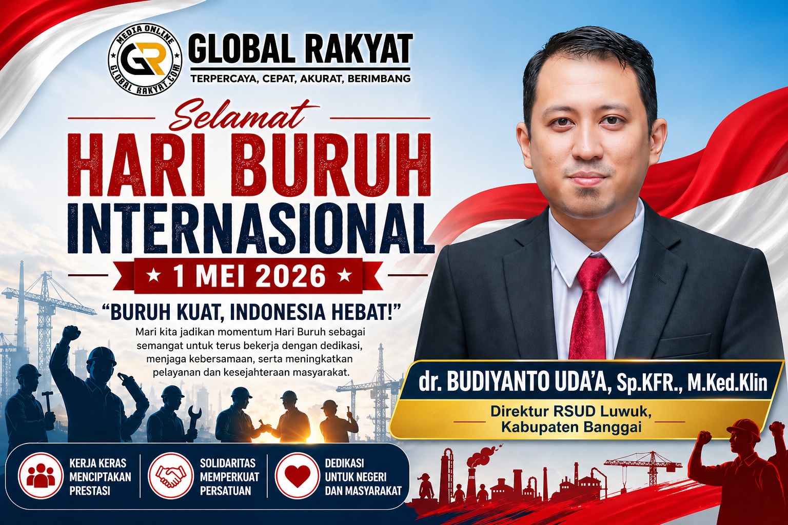 Hari Buru Internasional 1 Mei 2026 Admin Global RakyatApril 30, 202615 Views Post Views: 15 Baca Juga Berita Ini: Kapolres Banggai Ajak Bhayangkari Jaga Marwah Polri, Hindari Hedonisme Related postsSelamat Hari Buru Internasional 1 Mei 2026IBI Banggai Gelar Imunisasi Serentak, Momentum HUT ke-75 untuk Kejar Target Zero DosePemuda Tanjung Indra Ajak Masyarakat Kawal Pembangunan Di KaratonPemdes Jaya Bakti Ajukan Pemekaran, Desa Bajo Jaya Segera DibentukBentuk Pelayanan, Satlantas Polres Banggai, Pengaturan Lalin Malam HariPolisi Amankan Pelajar Di Luwuk, Diduga Telah 5 Kali Curi HP