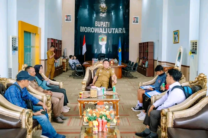 Kedua remaja yang didampingi orang tua dan pelatih karate (senpai) Galuh dari Polres Morut, diterima bupati di ruang kerjanya, Senin (28/7/2025).