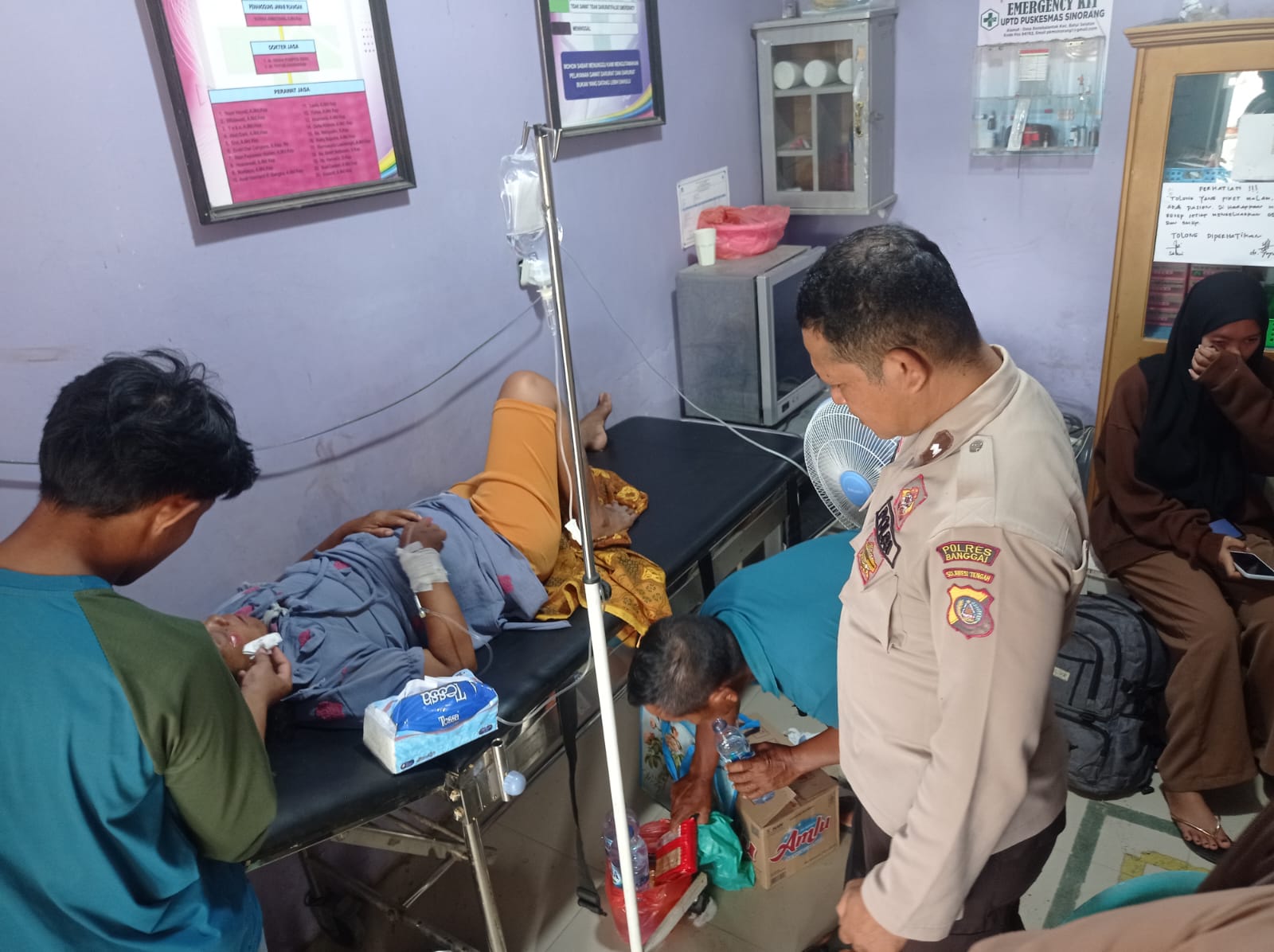 “Karena tersenggol membuat motor tidak terkendali dan pengendara bersama pembonceng jatuh ke aspal,” sambung Kapolsek.