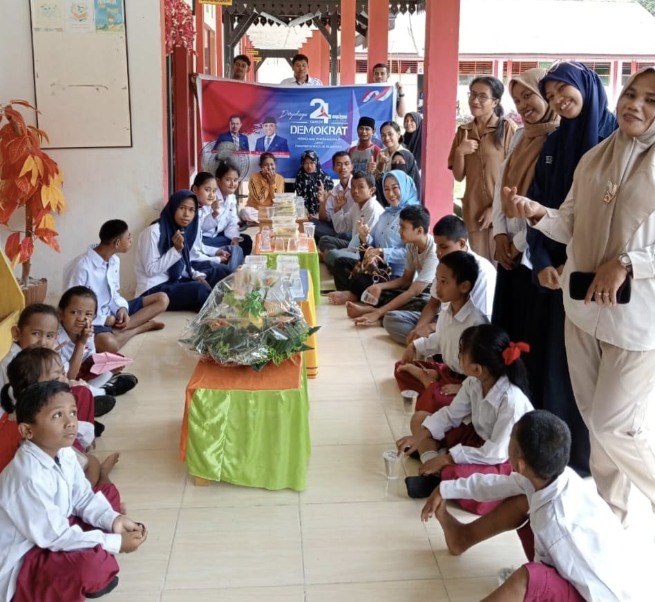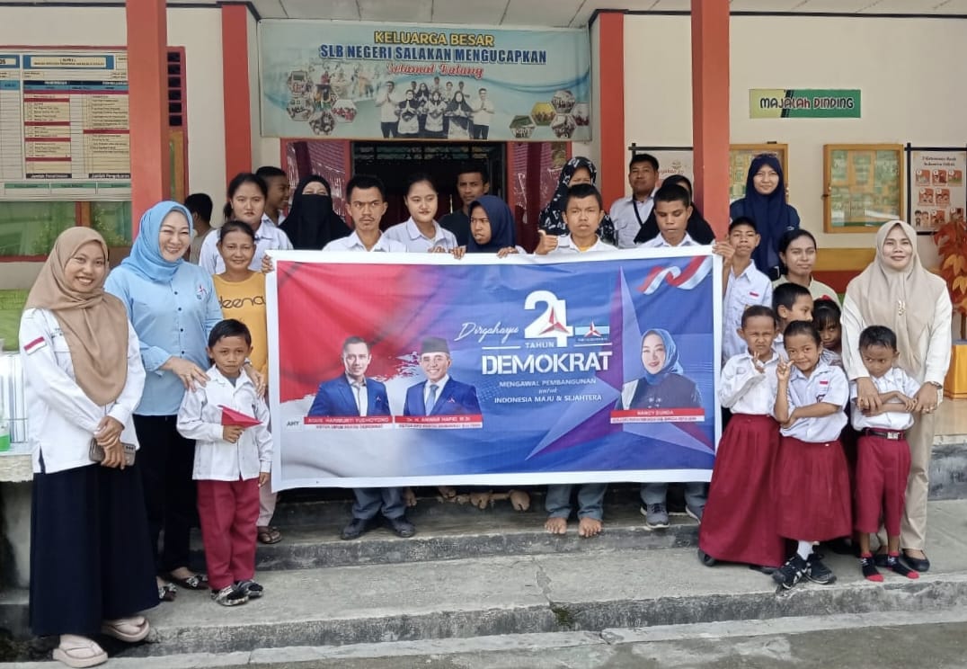 Salakan, Globalrakyat.com – Memperingati Hari Ulang Tahun ke-24 Partai Demokrat, Dewan Pimpinan Cabang (DPC) Partai Demokrat Kabupaten Banggai Kepulauan (Bangkep) menggelar perayaan sederhana bersama anak-anak Sekolah Luar Biasa (SLB) Kautu, Kecamatan Tinangkung, pada Selasa (9/9/2025).