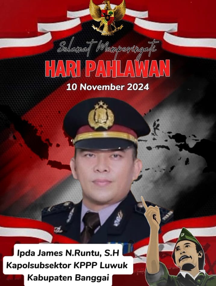 Ipda James N.Runtu, S.H. Kapolsubsektor KPPP Luwuk, Kabupaten Banggai Mengucapkan Selamat Hari Pahlawan 10 Nopember 2025 Admin Global RakyatNovember 10, 2025November 10, 2025144 Views Post Views: 144 Baca Juga Berita Ini: Gudep SMAN 2 Luwuk Gelar Perkajusa Di Permandian Sandakan, Desa Biak Related postsJangan Anggap Remeh! Diabetes Bisa Picu Stroke Dan JantungBendungan Ula Rusak Total, 200 KK Petani Tokala Atas Bergantung Pada HujanKUA Luwuk Utara Gelar (GERAMAS BERIBADAH) Perdana Di Masjid Nurul Yaqin Pasar UnjulanDirektur RSUD Luwuk Tandatangani Perjanjian Kinerja Dengan Kabag Dan KabidPolisi Sahabat Anak, Kepedulian Polres Banggai Biasakan Tertib Lalu Lintas Sejak DiniPolres Banggai Gelar Upacara Kenaikan Pangkat Pengabdian Kompol Haryadi: Bukti Loyalitas Sejati