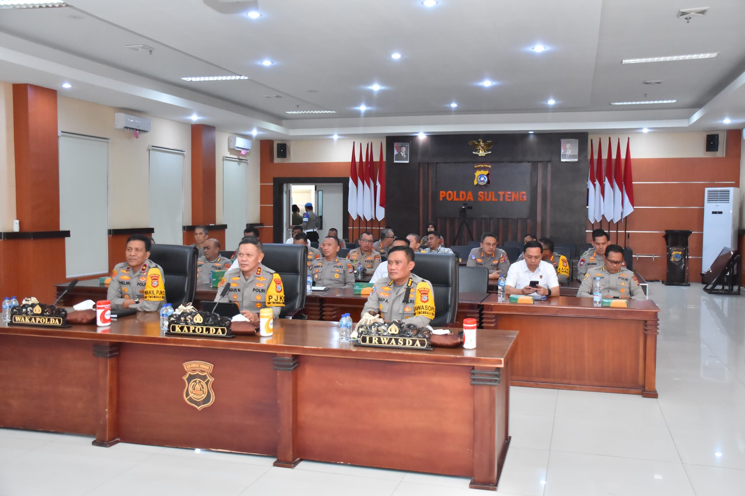 Secara virtual Kapolda Sulteng Irjen Pol. Dr. Agus Nugroho, S.I.K., S.H., M.H didampingi Wakapolda Brigjen Pol. Dr. Helmi Kwarta Kusuma Putra Rauf, S I.K., M.H, Irwasda dan pejabat utama Polda Sulteng mengikuti arahan Kapolri di Rupatama Polda Sulteng serta Para Kapolres Kapolresta dari Mako masing-masing, Rabu (30/4/2025)
