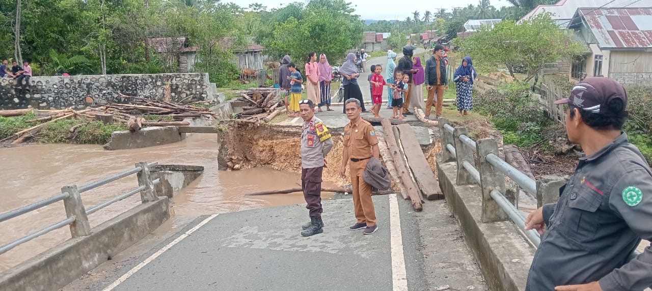 Buol, Globalrakyat.com – Bencana alam yang disebabkan oleh curah hujan deras pada Senin (06/10/2025) siang, sekitar pukul 13.00 Wita, mengakibatkan putusnya akses vital di Kabupaten Buol, Sulawesi Tengah. Badan jalan jembatan Desa Bengkudu, Kecamatan Bukal, mengalami kerusakan parah di kedua sisinya akibat luapan dan derasnya air sungai, menyebabkan jembatan tersebut tidak dapat dilalui oleh segala jenis kendaraan (R2, R4, dan R6) maupun masyarakat.
