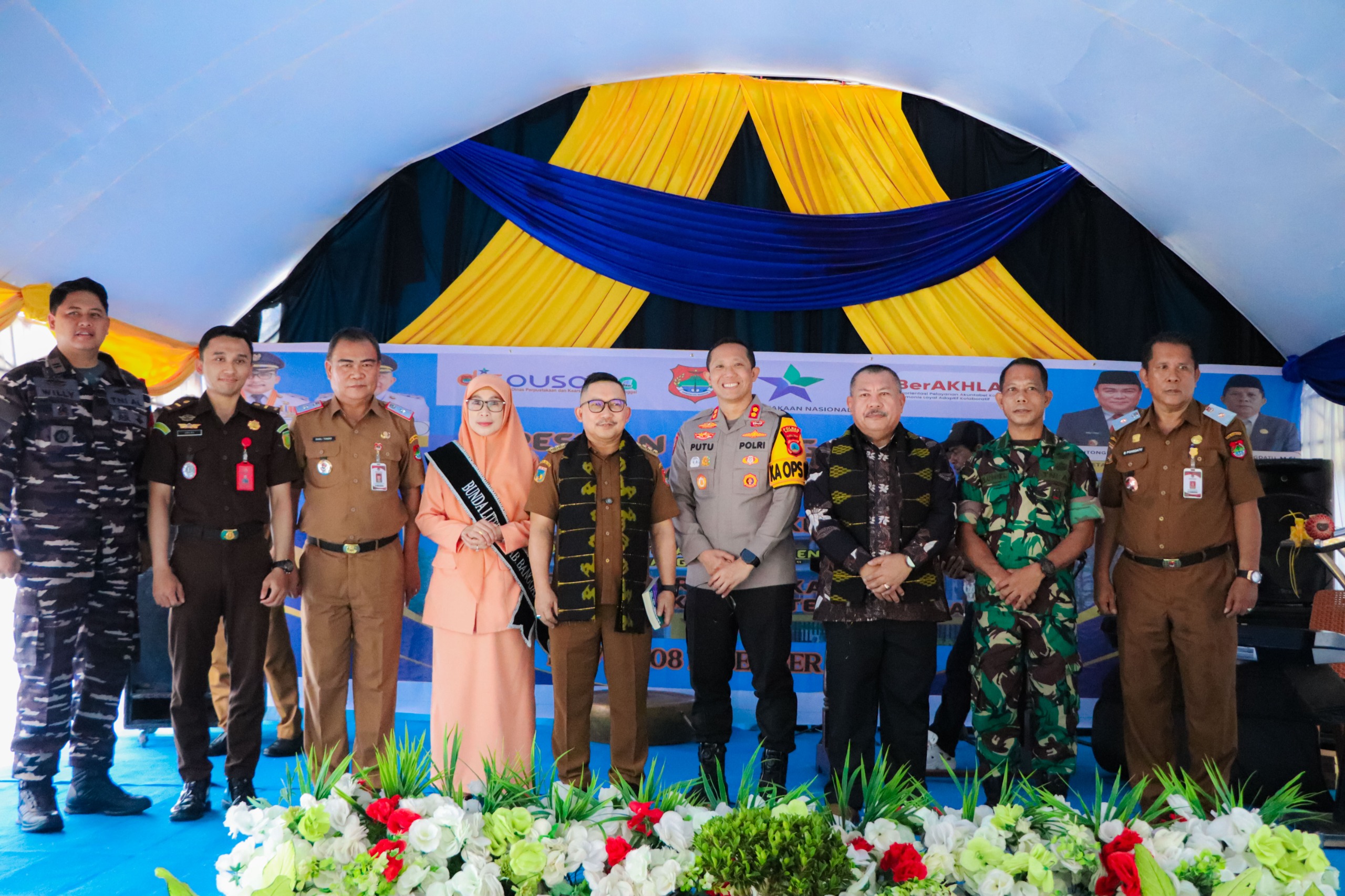 Acara ini dihadiri oleh sejumlah tokoh penting daerah, termasuk Kapolres Banggai AKBP Putu Hendra Binangkari, Bunda Literasi Banggai, Sekab, Kasdim 1308/LB, Danposal Luwuk, Kalapas Kelas IIB Luwuk, Kejari, OPD, Camat, dan tamu undangan.