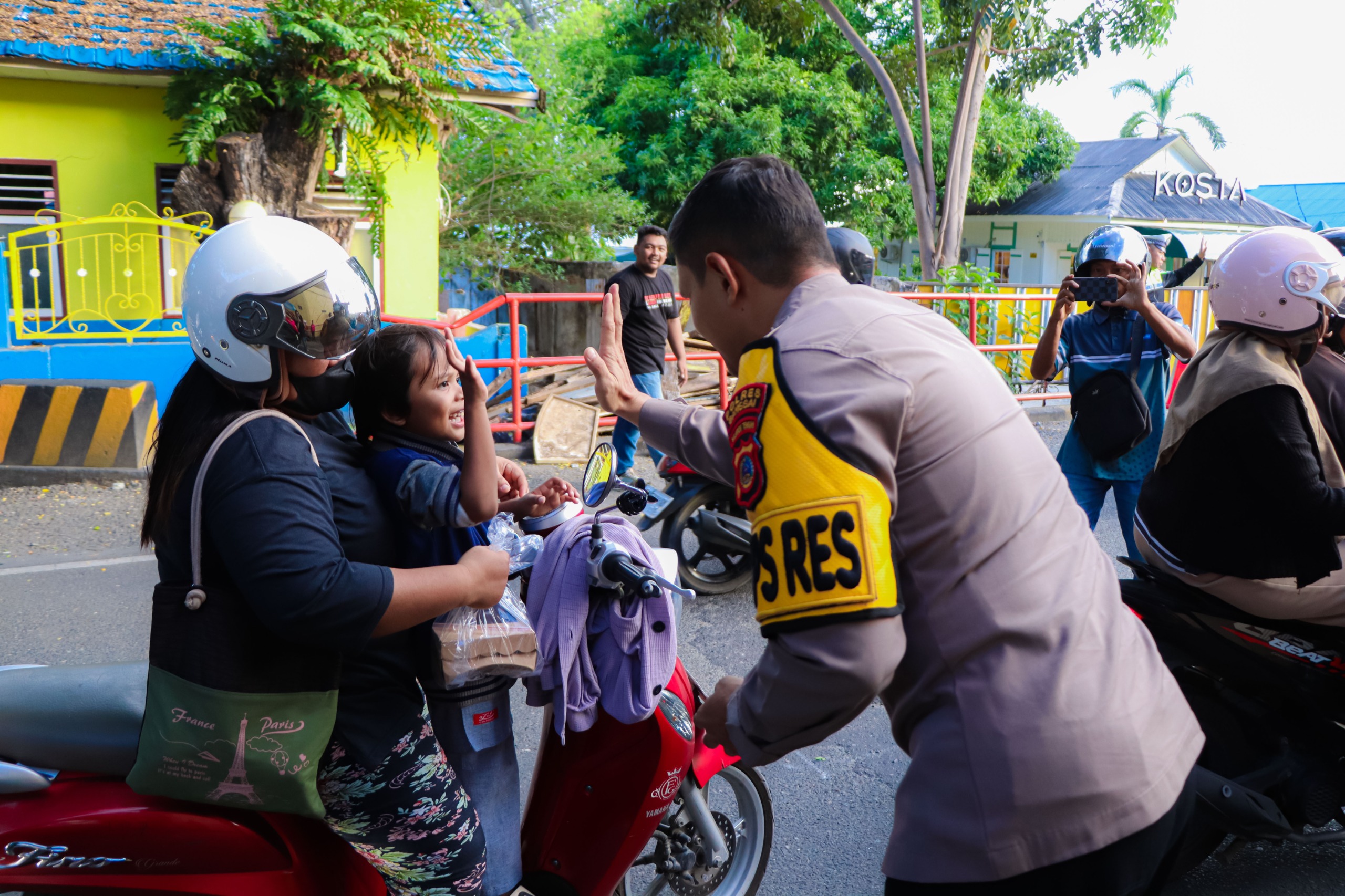 Menjelang waktu berbuka puasa, Kapolres dan Bhayangkari turun membagikan paket makanan kepada pengendara, pejalan kaki, serta warga yang melintas. Suasana penuh kehangatan dan kebersamaan tampak dalam interaksi antara personel dan masyarakat.