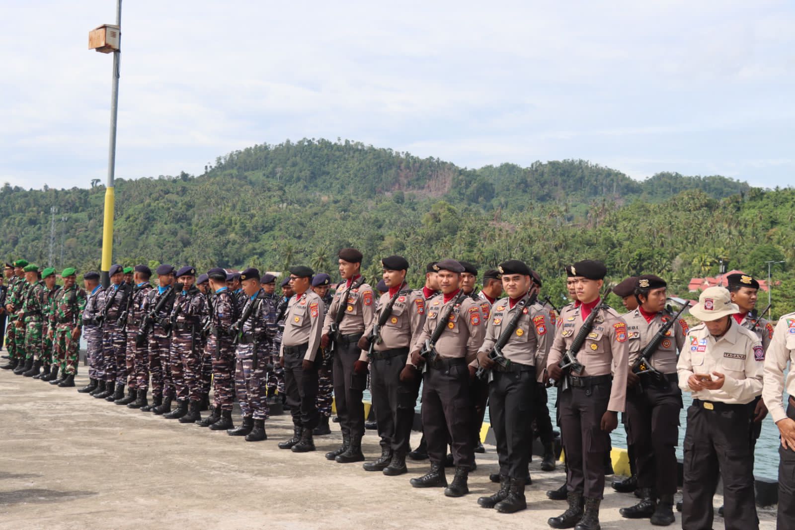 Pasukan upacara yang terdiri dari gabungan TNI AD, TNI AL, POLRI, SAT POL PP/DAMKAR, TAGANA, dan PKH DINSOS, berdiri tegak sepanjang kegiatan, mencerminkan kesatuan dan semangat patriotisme di Kabupaten Buol.