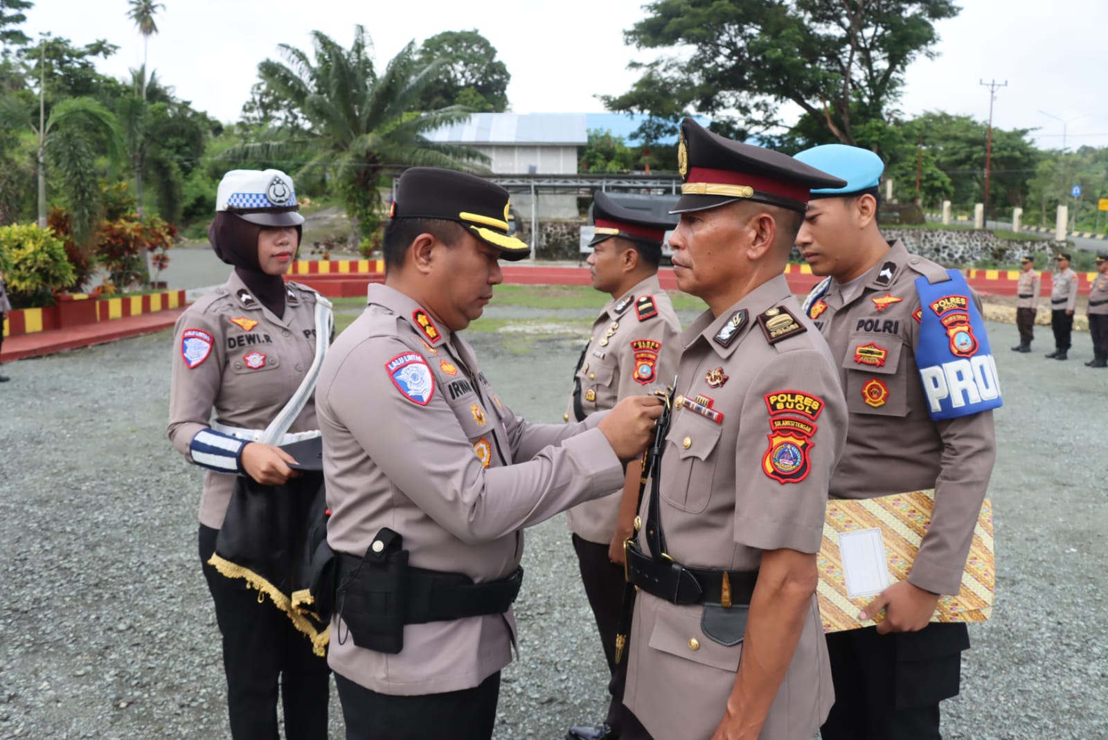 Kapolres Buol AKBP Irwan, S.I.K, M.H, M.Tr.Opsla memimpin upacara serah terima jabatan (sertijab) Kapolsek Paleleh dan Kasihumas Polres Buol di Lapangan Upacara Polres Buol. Kamis (18/12/2025).