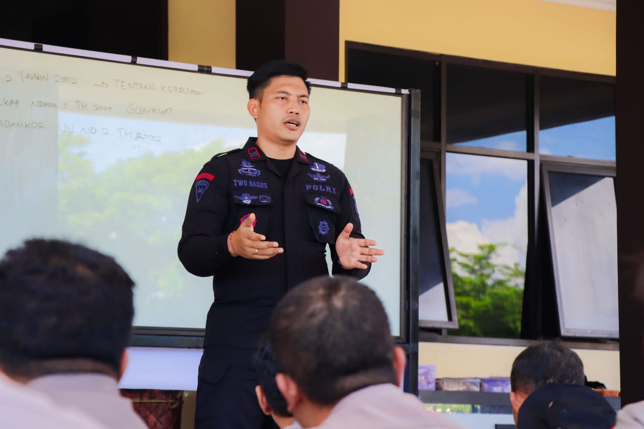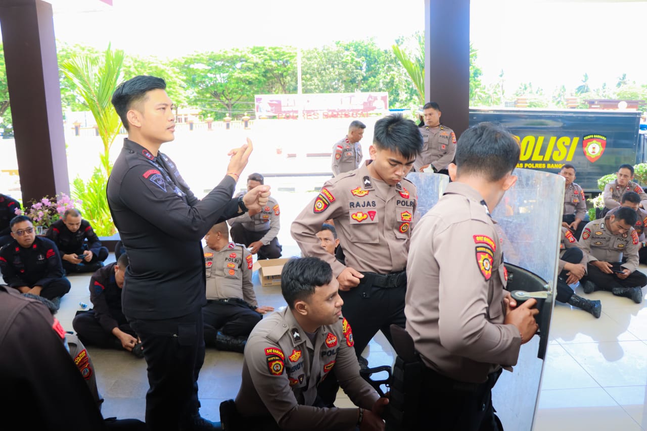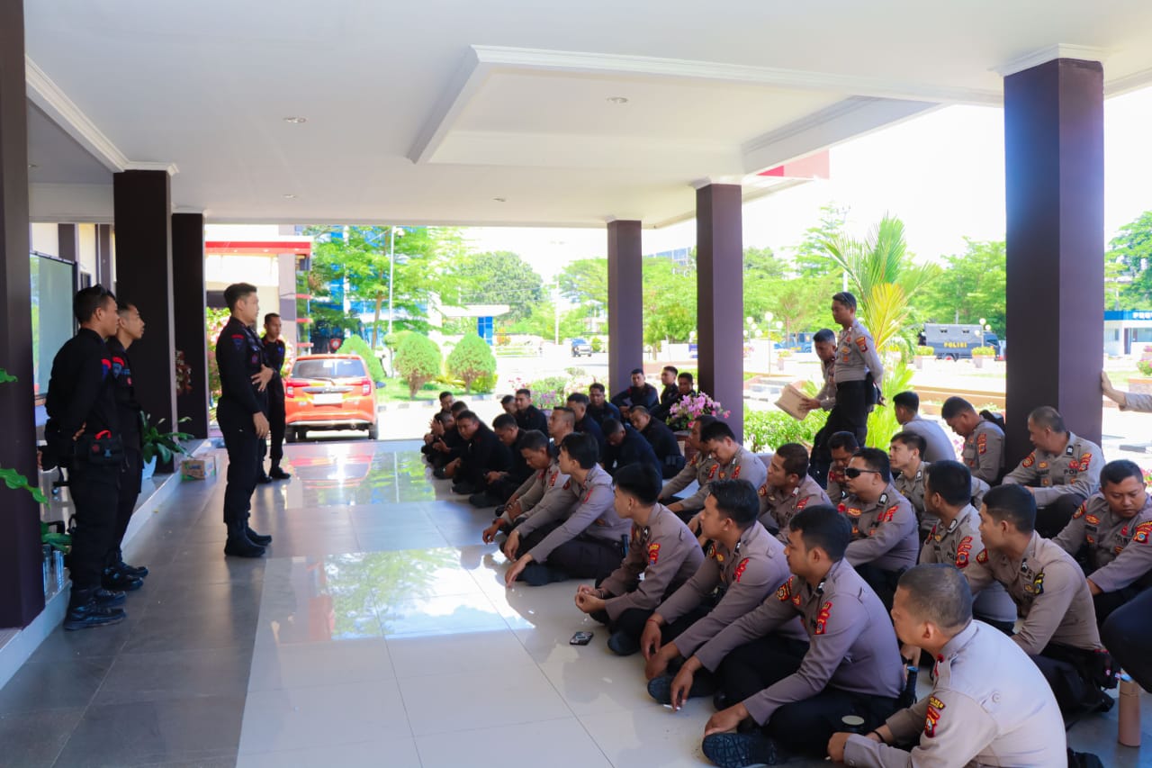 Latihan yang digelar di halaman Mako Polres Banggai dipimpin oleh Danki Pelopor Yon B Luwuk IPTU Two Bagus Suryadinata.