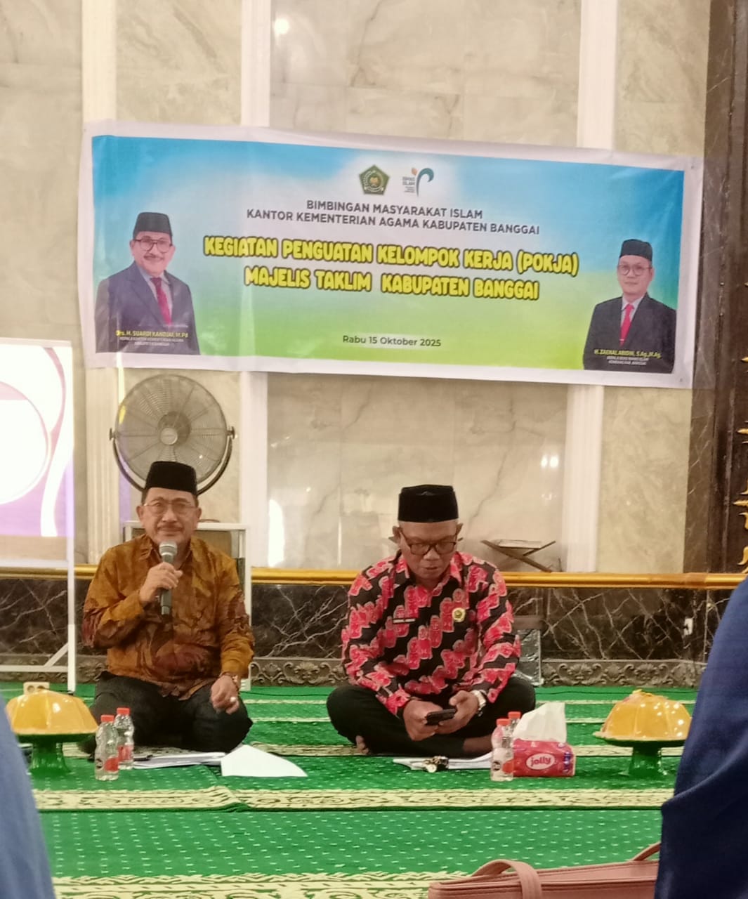Kegiatan ini juga dihadiri oleh, H.Zaenal Abidin S.Ag.M.Ag., serta Kepala Kementerian Agama Kabupaten Banggai, Drs. H. Suardi Kandjai, M.Pd. Dalam Berbagainya, ia menyampaikan rencana pembentukan Pokja Majelis Ta’lim di Kabupaten Banggai.