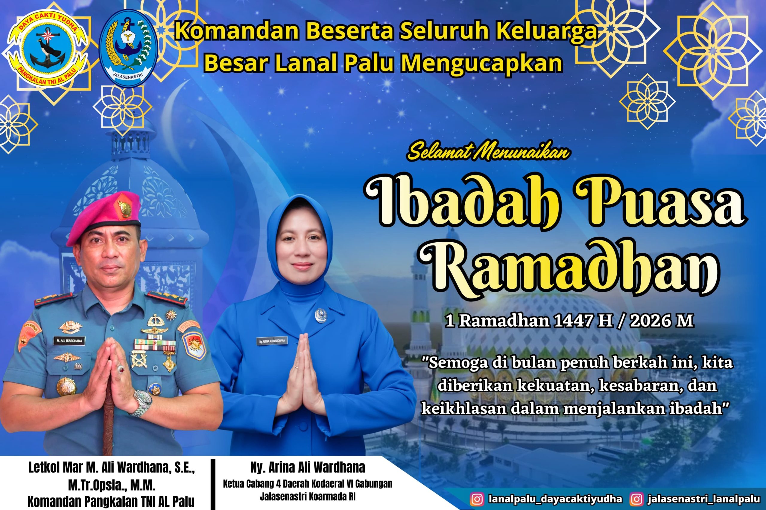 Komandan Beserta Seluru Keluarga Besar Lanal Palu Mengucapkan Selamat Menunaikan Ibadah Puasa Ramadhan 1447 H/2026 M Admin Global RakyatFebruary 18, 202655 Views Post Views: 55 Baca Juga Berita Ini: Ditlantas Polda Sulteng Gelar “Polantas Menyapa” Ngopi Bareng Bersama Komunitas Otomotif Dan Motoris Related postsKepala BKPSDMD Kota Palu Bertandang Ke Dinas Kependudukan Dan Catatan Sipil Kota PaluKepala BKPSDMD Kota Palu Kunjungi Dinas Penanaman Modal Dan Pelayanan Terpadu Satu Pintu Kota PaluIPBK-Palu Gelar Seminar Dan Diskusi Publik : Menyikapi Dampak Positif Dan Negatif Tambang Di Sulawesi TengahBupati Morut Temui BPJN Sulteng Untuk Memastikan Perbaikan Jalan Nasional Dan Daerah Yang Rusak ParahBupati Morut Dan Anggota DPD RI Tampil Pada Kegiatan Pengukuhan Pengurus APTKK SultengKadis Kominfo Dan Kadis PMD Morut Tampil Membawakan Materi Pada Pelatihan Perangkat Desa Se-Morowali Utara