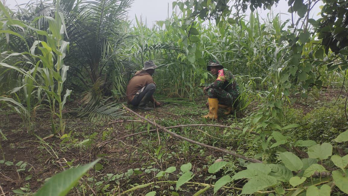 Selain itu, Koptu Herman turut mendampingi warga dalam program ketahanan pangan dengan memberikan arahan mengenai perawatan kebun jagung.