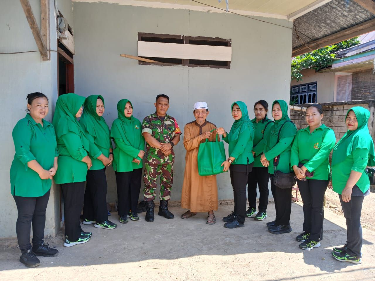 Dalam kegiatan tersebut, Persit Koramil 1311-04/Lembo memberikan bantuan berupa tali asih kepada beberapa warga lansia yang berada di Desa Beteleme.