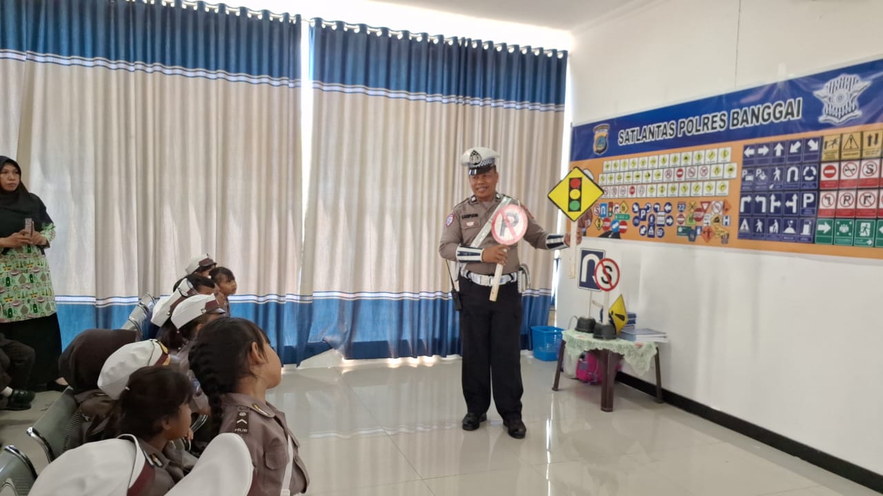 Diawali Kunjungan tersebut, anak- anak dikenalkan tentang tugas-tugas Kepolisian serta diberikan materi tentang pengenalan tata tertib berlalu lintas dan pengenalan rambu-rambu lalu lintas oleh Kanit Kamsel Satlantas Polres Banggai, Aiptu Saripuddin.
