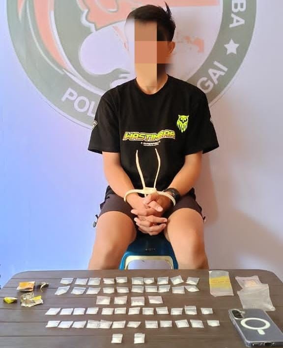 “Begitu laporan kami terima, tim langsung melakukan penyelidikan dan berhasil mengamankan tersangka di dalam kontrakannya. Saat digeledah, kami menemukan 50 paket sabu siap edar,” ujarnya.