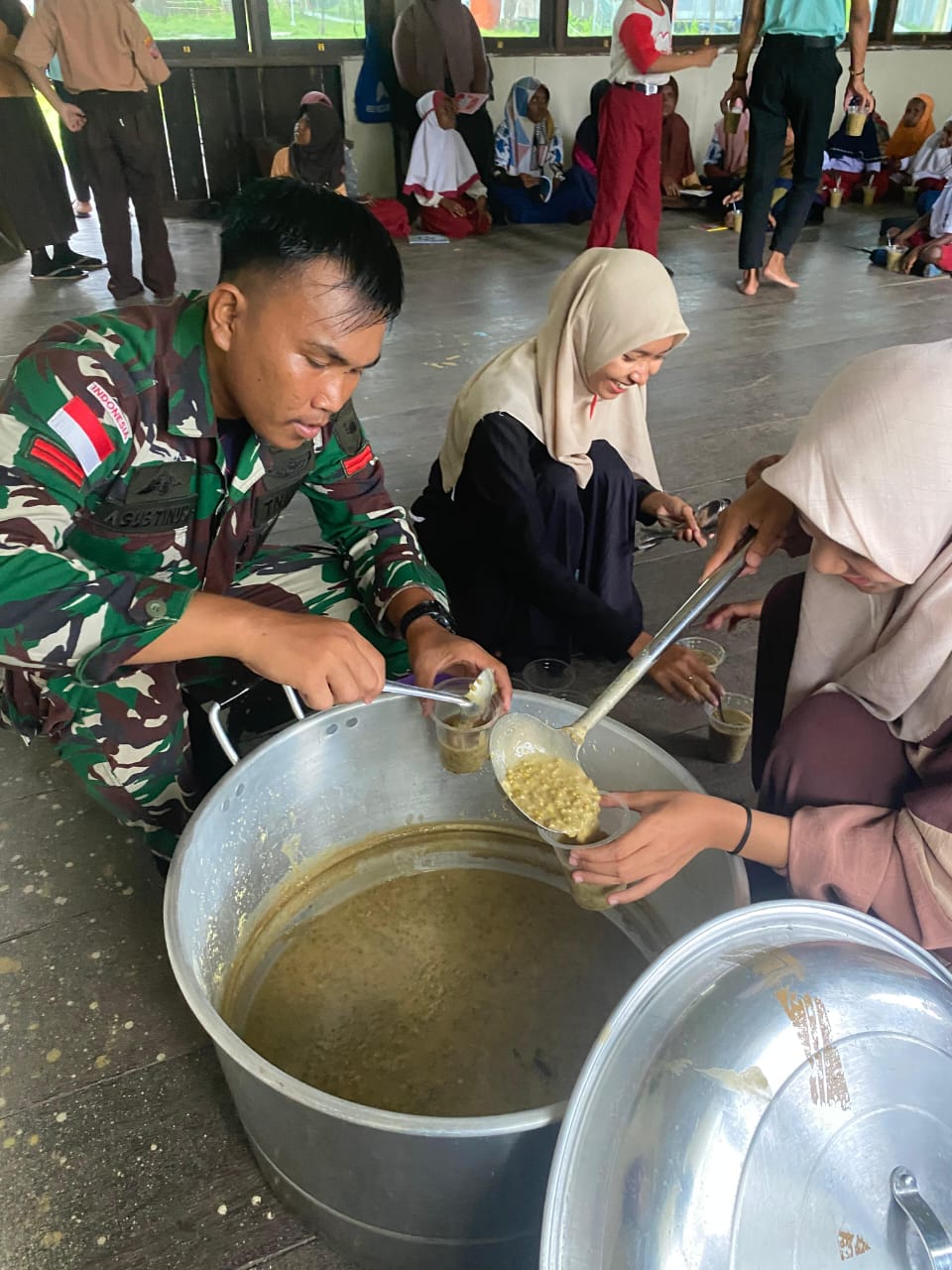 Anak anak di 2 Sekolah tersebut kebanyakan tidak memiliki buku tulis selayaknya sekolah yang ada, namun kalau melihat kondisi kepemilikan buku tulis pun masih minim, tetapi rasa ingin belajar mereka sangat tetap luar biasa, oleh karena itu Pos Kokoda sebanyak 10 orang dipimpin oleh Sertu Irzal Rahy selaku Wadanpos Kokoda berinisiatif melaksanakan pembagian buku tulis serta makan berupa kacang hijau kepada siswa-siswi di Madrasah Ibtidaiyah Negeri 1 Kokoda dan Madrasah Tsanawiyah Yamueti Kokoda yang dijadikan 1 tempat berada MIN 1 Kokoda. Harapannya anak-anak akan semakin giat belajar dalam menuntut ilmu sehingga mereka dapat meraih cita-citanya di masa yang akan datang.
