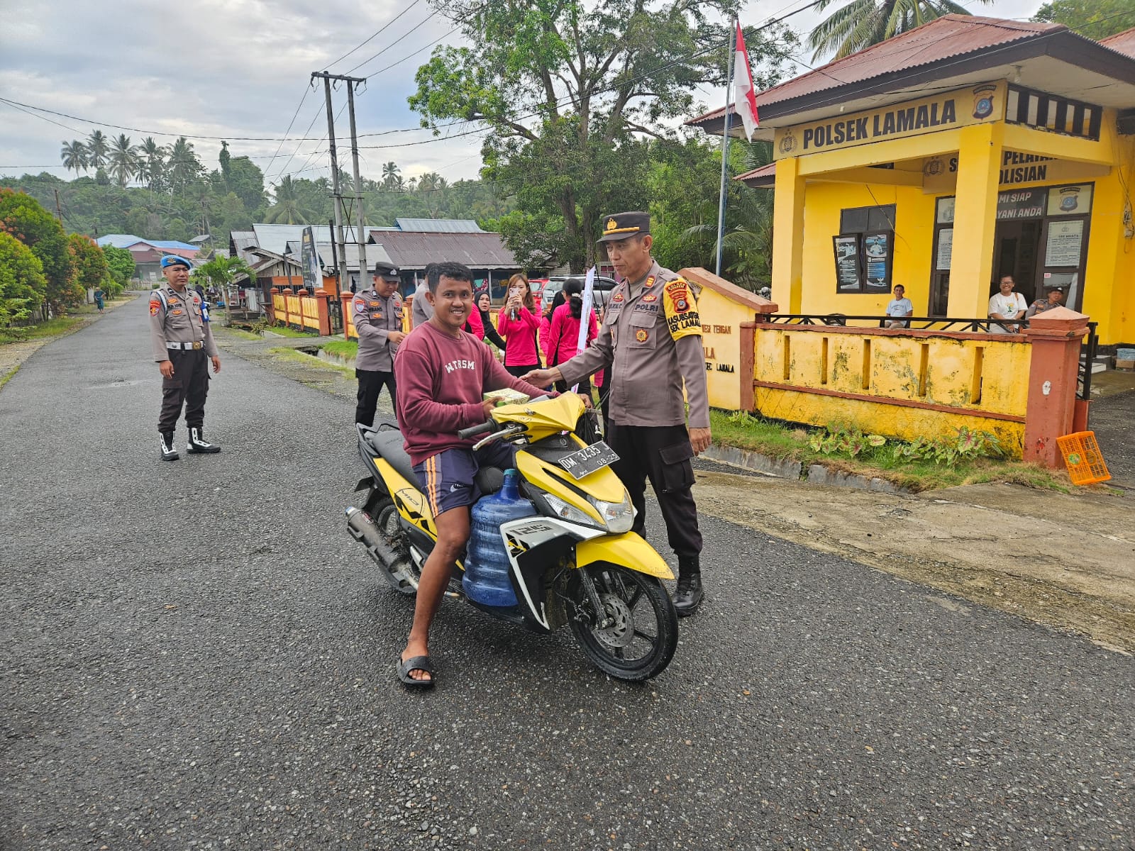 Pembagian takjil jelang berbuka puasa kepada semua penggendara yang melintas tersebut, dipimpin Kapolsek Lamala AKP Rudi Cornelis dan para anggota beserta Bhayangkari Ranting Lamala.