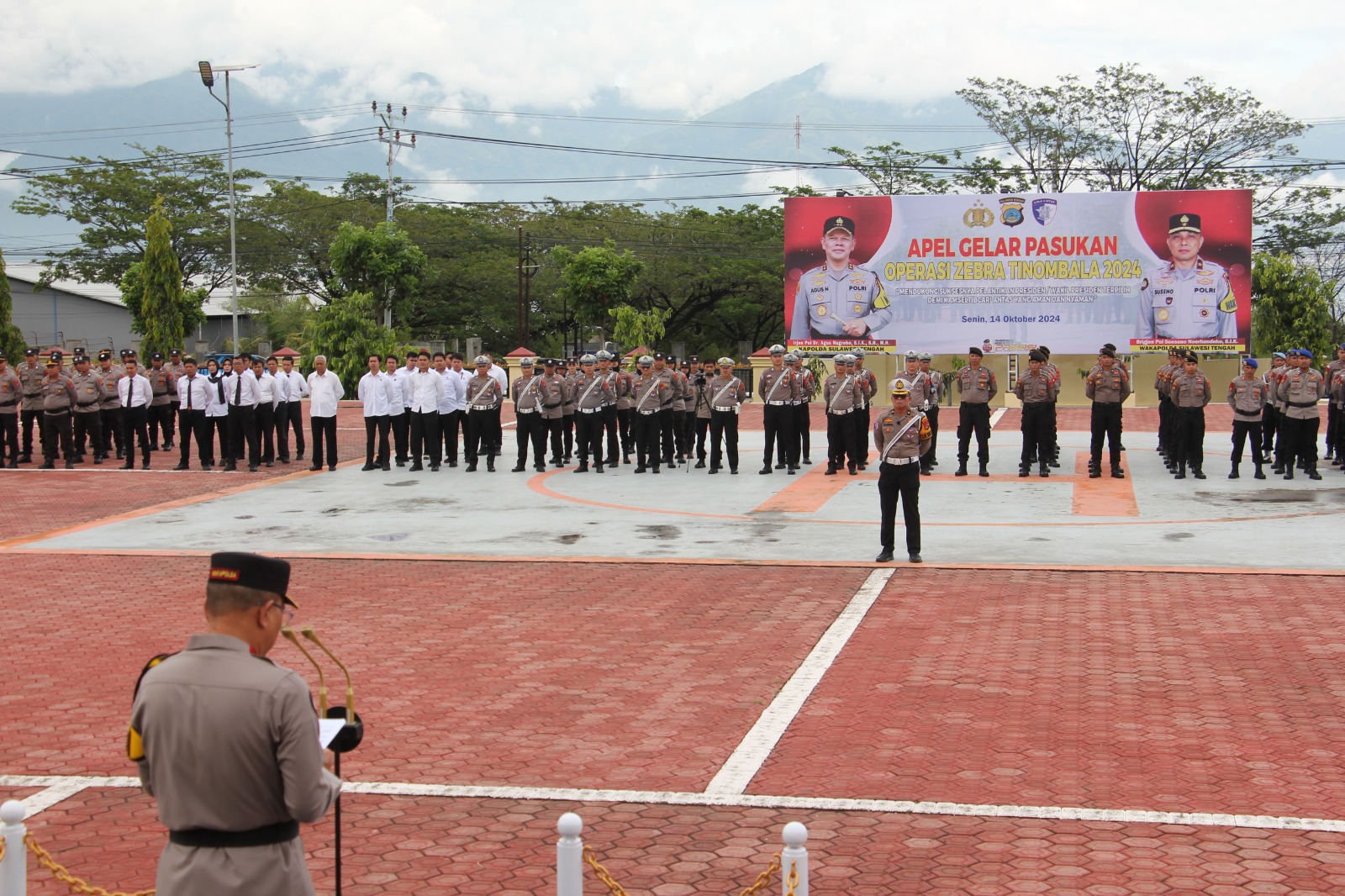 Dengan mengusung tema “Mendukung Suksesnya Pelantikan Presiden dan Wakil Presiden Terpilih serta Mengajak Masyarakat untuk Tertib Berlalu Lintas demi Terwujudnya Kamseltibcarlantas Yang Aman dan Nyaman”, Operasi Kepolisian Kewilayahan dengan sandi Zebra Tinombala-2024 akan dilaksanakan selama 14 hari kedepan, mulai dari tanggal 14 sampai dengan tanggal 27 Oktober 2024, terang Wakapolda.