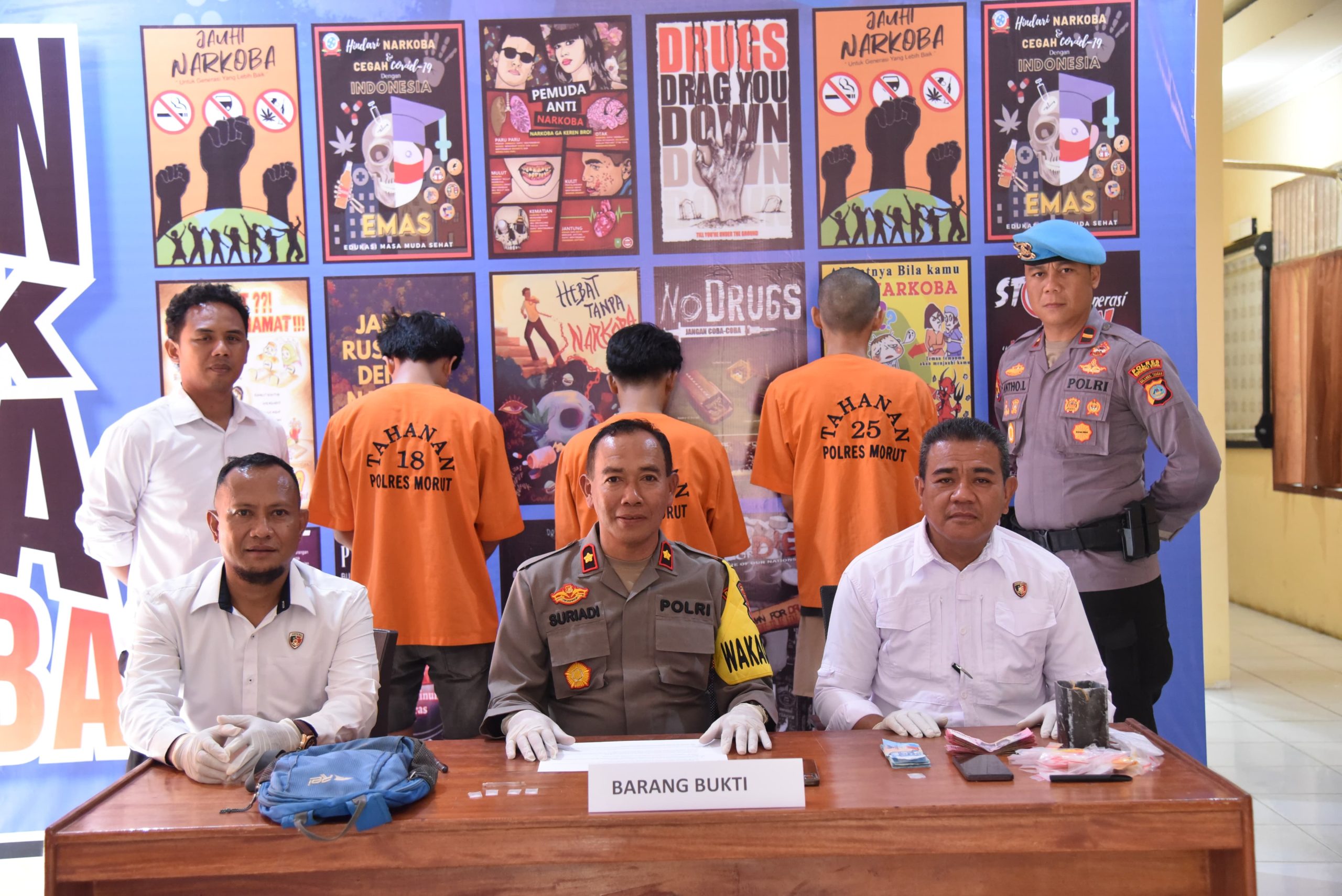 Kapolres Morowali Utara yang diwakili oleh Wakapolres Morowali Utara Kompol Suriadi S.H., M.M dan didampingi oleh Kasatresnarkoba Iptu Alfrets Fredrik Sumaa Gagola S.Sos, KBO Satresnarkoba dan Kasipropam Polres Morowali Utara membeberkan hasil kerja keras timnya dalam mengungkap Penyakit Masyarakat tersebut di Ruang Satresnarkoba Polres Morowali Utara. Senin (11/11/2024).