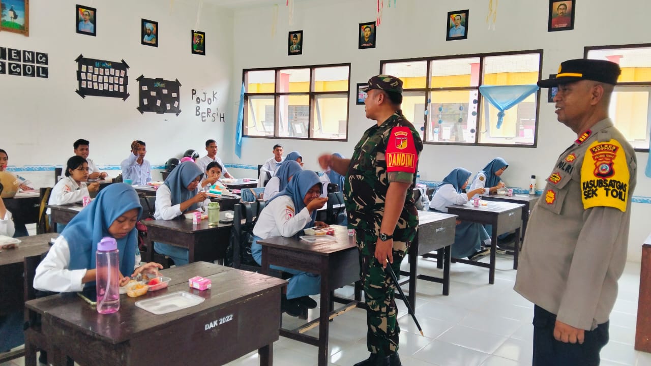 Perdana, Kapolsek Hadiri Pemberian Makan Bergizi Gratis ke Pelajar di Toili