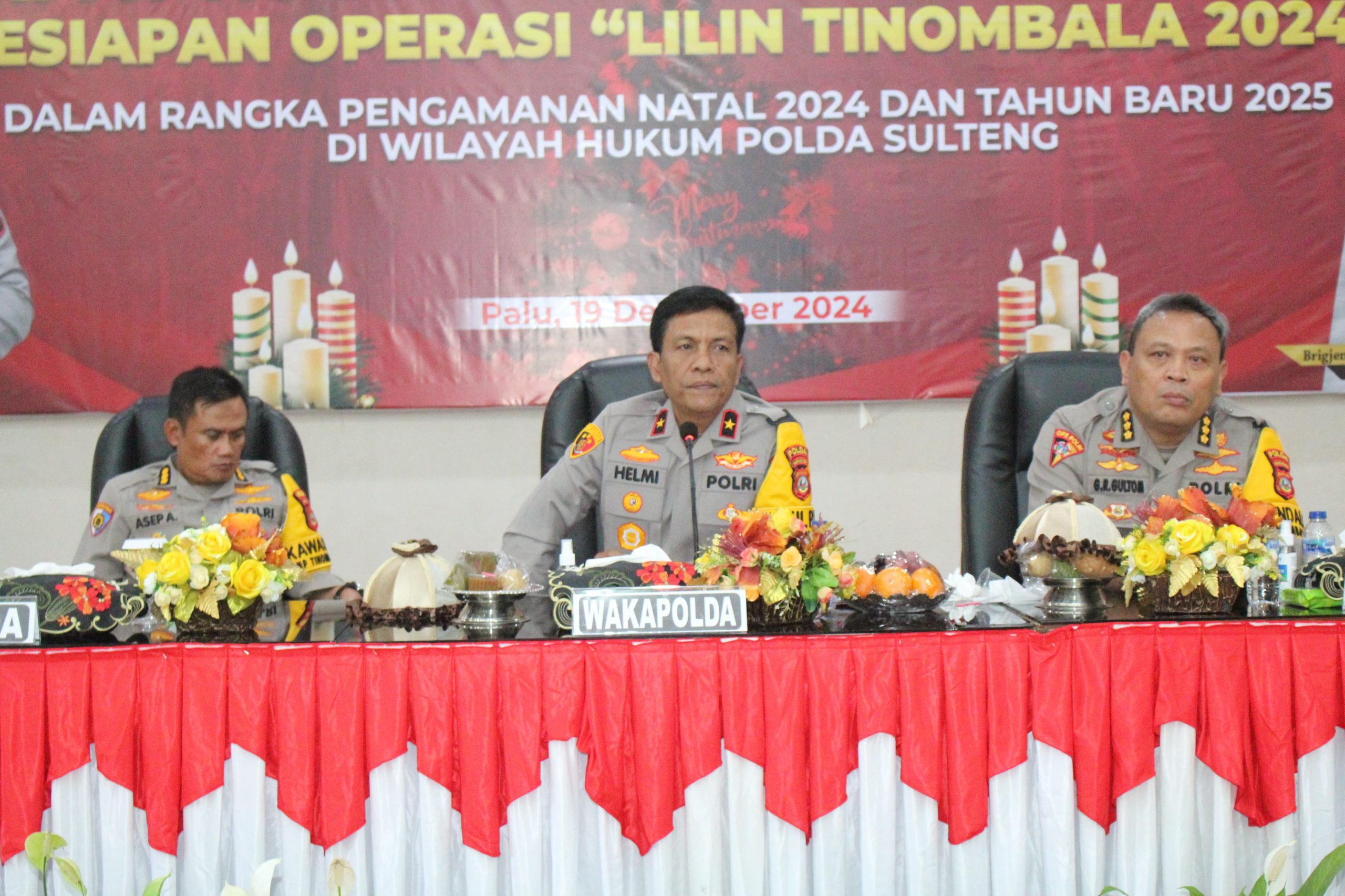Palu, Globalrakyat.com – Menjelang Pengamanan Natal 2024 dan tahun baru 2025, Kapolda Sulteng diwakili Wakapolda Brigjen Pol. Dr. Helmi Kwarta Kusuma Putra Rauf menghadiri dan membuka rapat koordinasi yang dilangsungkan di Ruang Pogombo Kantor Gubernur Sulteng, Kamis (19/12/2024)